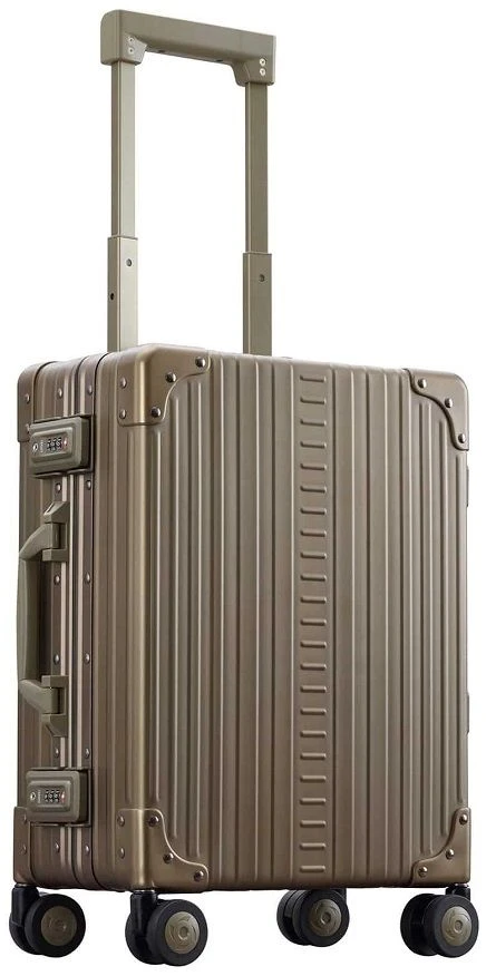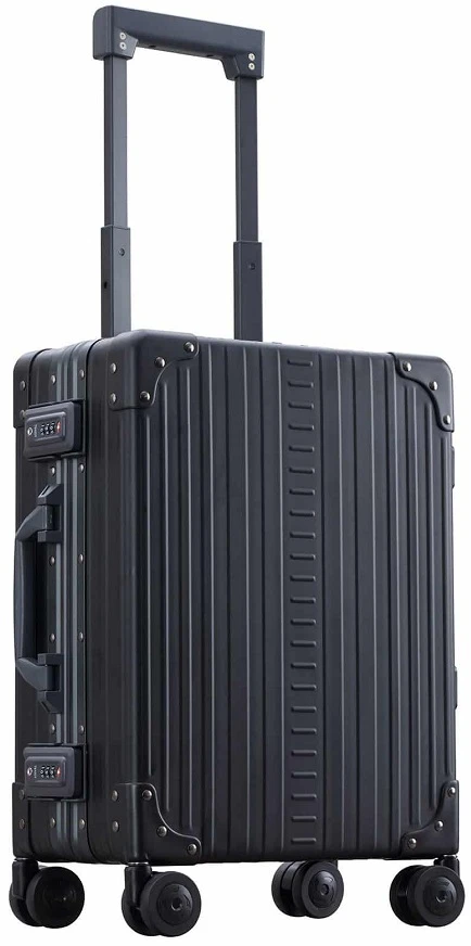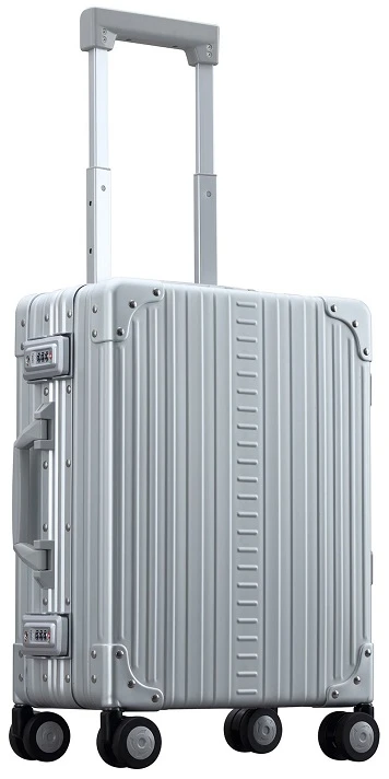 Conveniently carry the Aleon Aluminum luggage 19″ International carry on with you on board most airlines! It will glide right down the aisle of planes and trains on the dual spinner wheels. You’ll appreciate the ease of quickly opening and closing the Aleon Aluminum luggage with the heavy duty drawbolts! It also has a built-in TSA approved combination lock. The rubber gasket insures the contents are dust and moisture free. Travel well and elegantly with Aleon Aluminum luggage! We include FREE shipping and a FREE leather luggage tag monogrammed for you with your own initials.