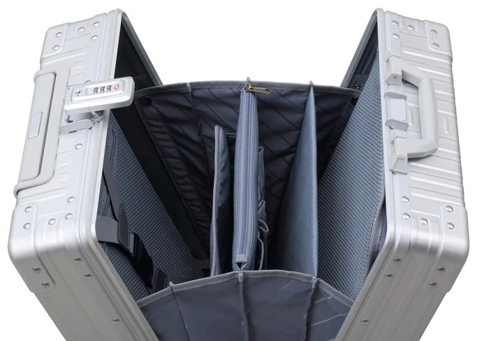 Journey effortlessly and elegantly with the Aleon Aluminum 21″ overnight business carry on luggage! This Aleon Aluminum 21″ business carry on luggage has a dual spinner wheels that let you roll easily in any direction and down the aisle of planes and trains. The Aleon Aluminum 21″ business carry on luggage has draw bolt catches so no zippers to bother with. It also has a gasket around the perimeter to keep out moisture and dust! With a removable business organized and suiter for packing ease, you’ll enjoy those short trips using the Aleon aluminum 21″ overnight carry on luggage! We include FREE shipping and a FREE leather luggage tag monogrammed with your initials for instant identification wherever you travel.