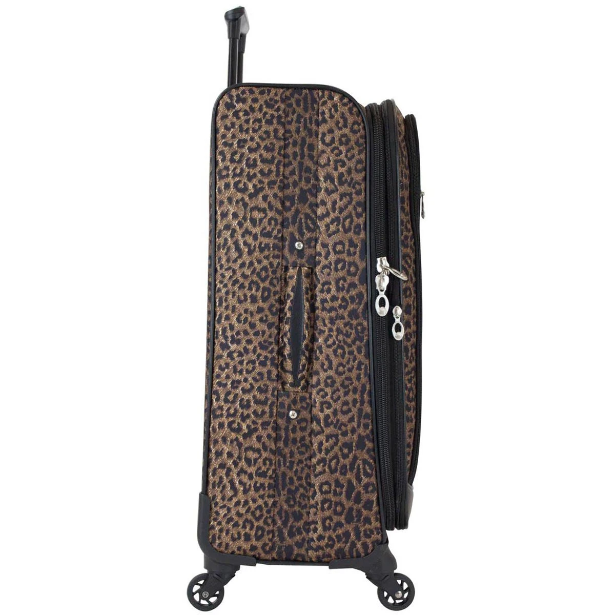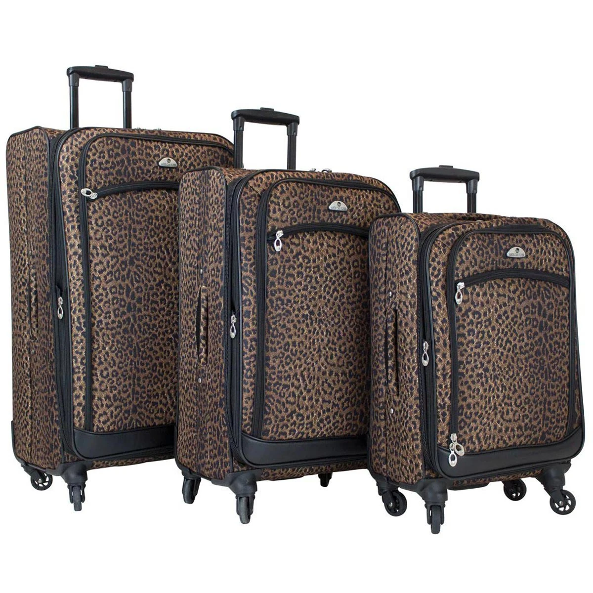 Take a walk on the wild side with this American Flyer Animal Print 5-Piece Spinner Luggage Set! It includes 2 check-in luggage pieces, a carry-on luggage, a wheeled duffel and a personal carry-on duffel.