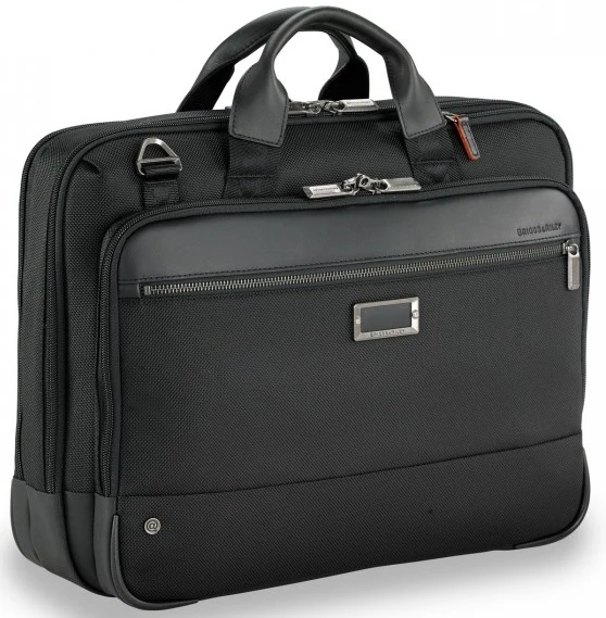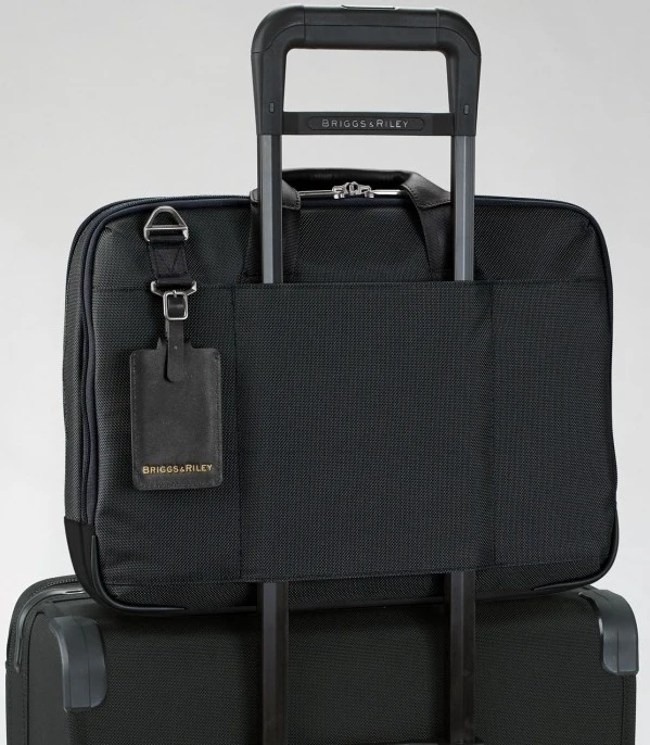 You’ll appreciate the sophisticated blend of luxury and innovation with the Briggs & Riley @Work medium brief! With the Briggs & Riley Guaranteed for Life warranty, you won’t have to worry about repairs! Built tough, the Briggs & Riley @Work briefcase is made of 1680D Ballistic nylon with leather trim. Multiple pockets and compartments keep you efficiently organized and it can be carried easily! This Briggs & Riley @Work brief has double handles, a removable shoulder strap and a piggy-back sleeve so you can slip it over the trolley handle of your rolling luggage securely! We include FREE shipping and a FREE leather ID tag with your initials monogrammed too!
