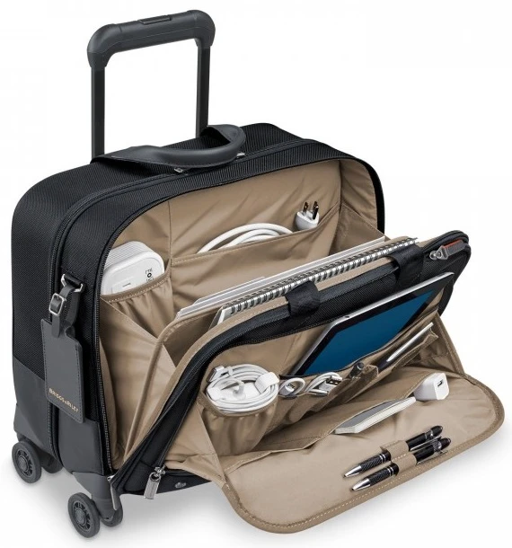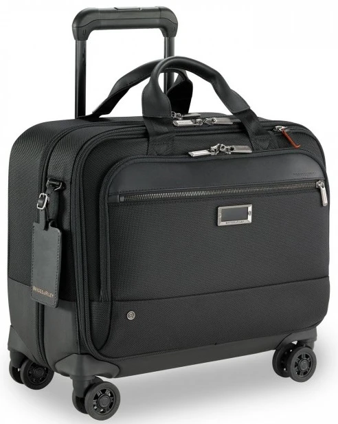 Distinctive and well organized, the Briggs & Riley @Work medium spinner brief gets you there in style. The dual spinner wheels easily go along in any direction. Made of 1680D Ballistic nylon with leather trim, the Briggs & Riley @Work spinner brief always makes the right impression. Multiple pockets and compartments insure you are well organized! You’ll appreciate the Briggs & Riley Guaranteed for Life warranty that will cover repairs should they ever be necessary! We include FREE shipping and a FREE leather bag tag with your initials monogrammed.