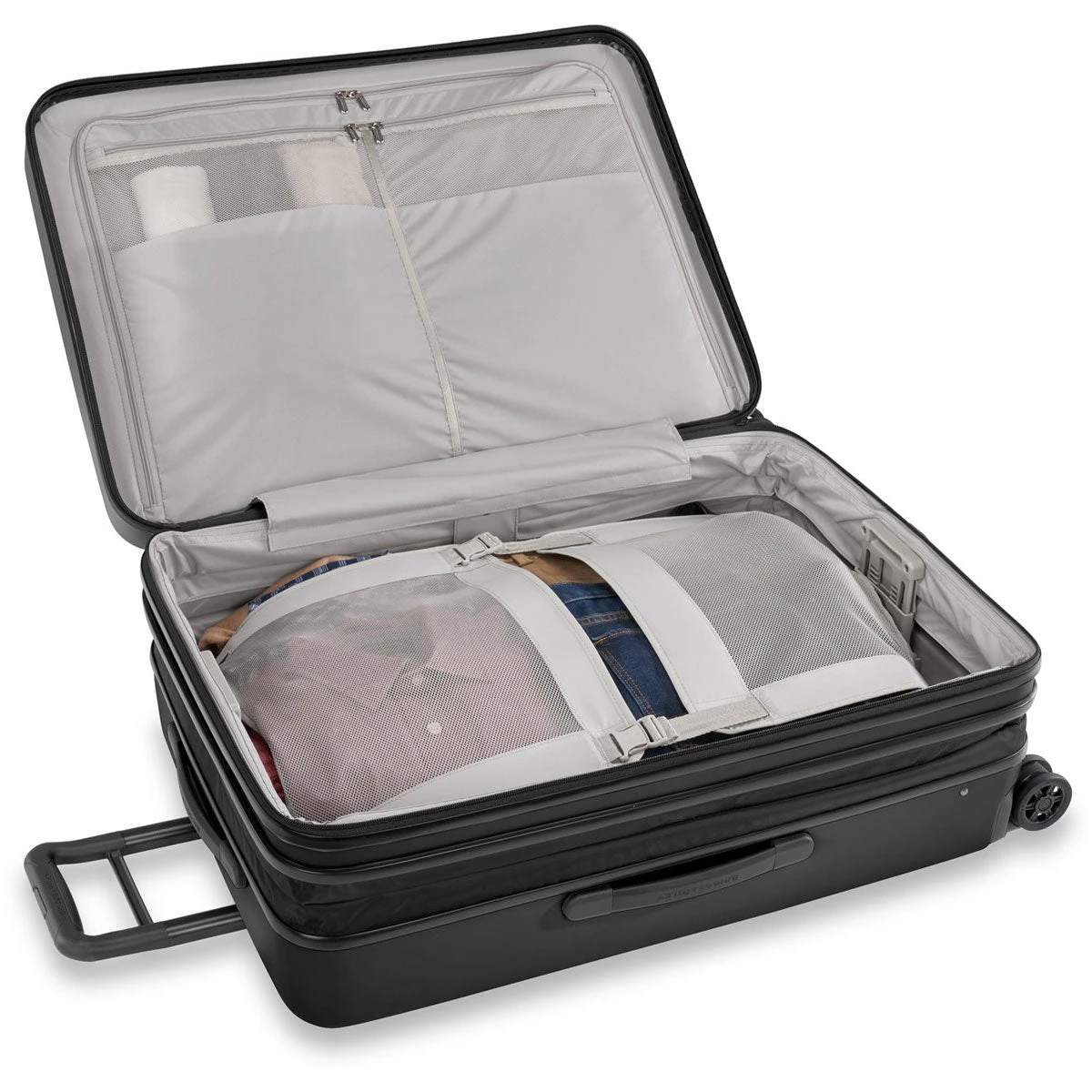 - Briggs & Riley fabric bag with drawstring included: protects suitcase when in storage