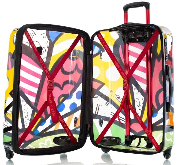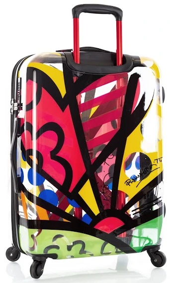 The Britto by Heys New Day 26″ hardside transparent spinner will keep you smiling wherever you journey. This colorful luggage is easy to spot at crowded baggage carousels and the clear transparent panels insure you have fun. Easily expand this Britto New Day 26″ transparent luggage for 20% more packing space. With well designed spinner wheels, you can roll the bag in any direction. It has Hinomoto spinner wheels for better control and the smoothest ride. The bag is fully lined and divided for organized packing and unpacking. It has a combination lock for security and this is TSA approved for travel by the airlines. With the emphasis on style, you can’t go wrong with Britto SALE New Day Transparent Luggage. Shipping is FREE and we include a FREE leather bag tag monogrammed for you with your initials for quick identification everywhere you journey.