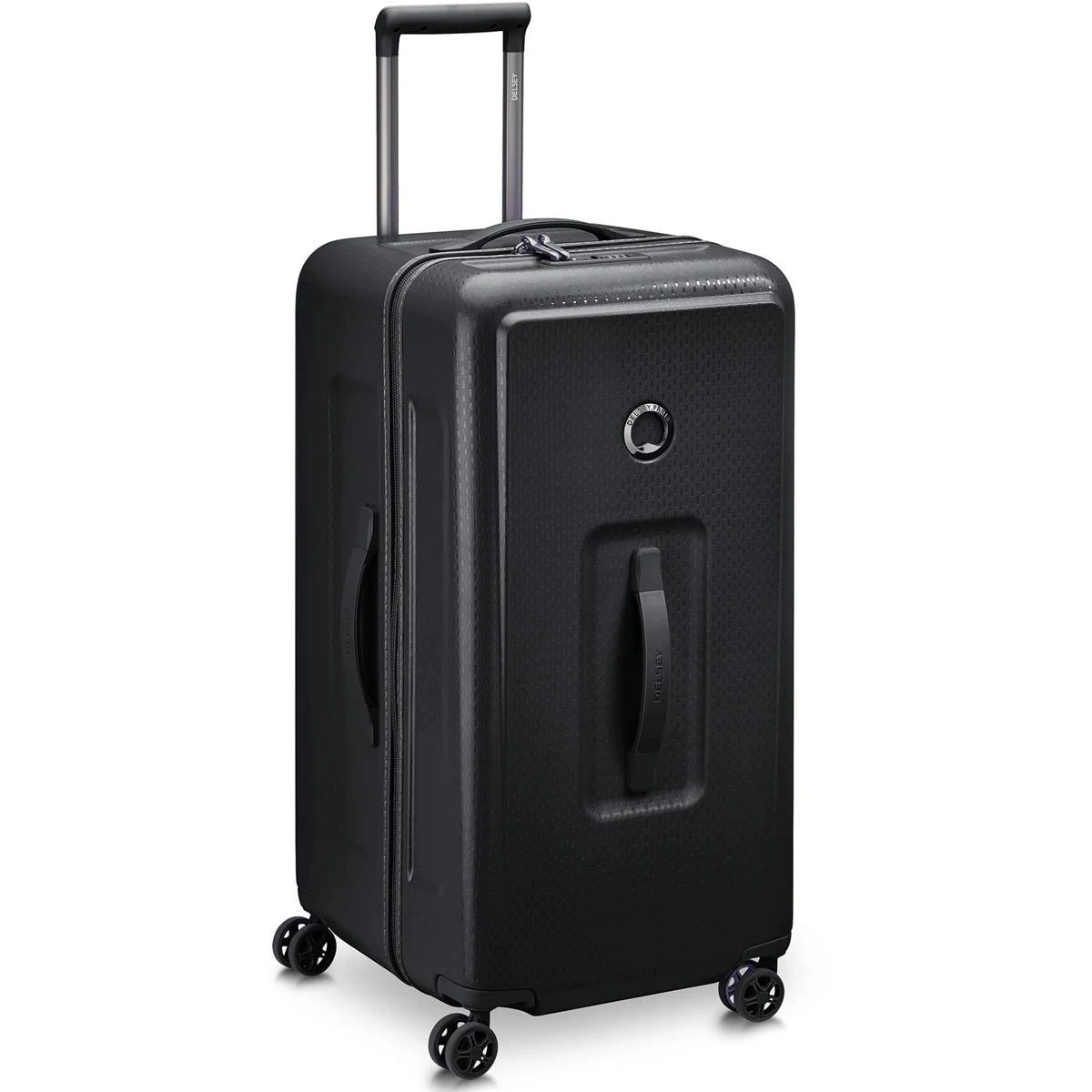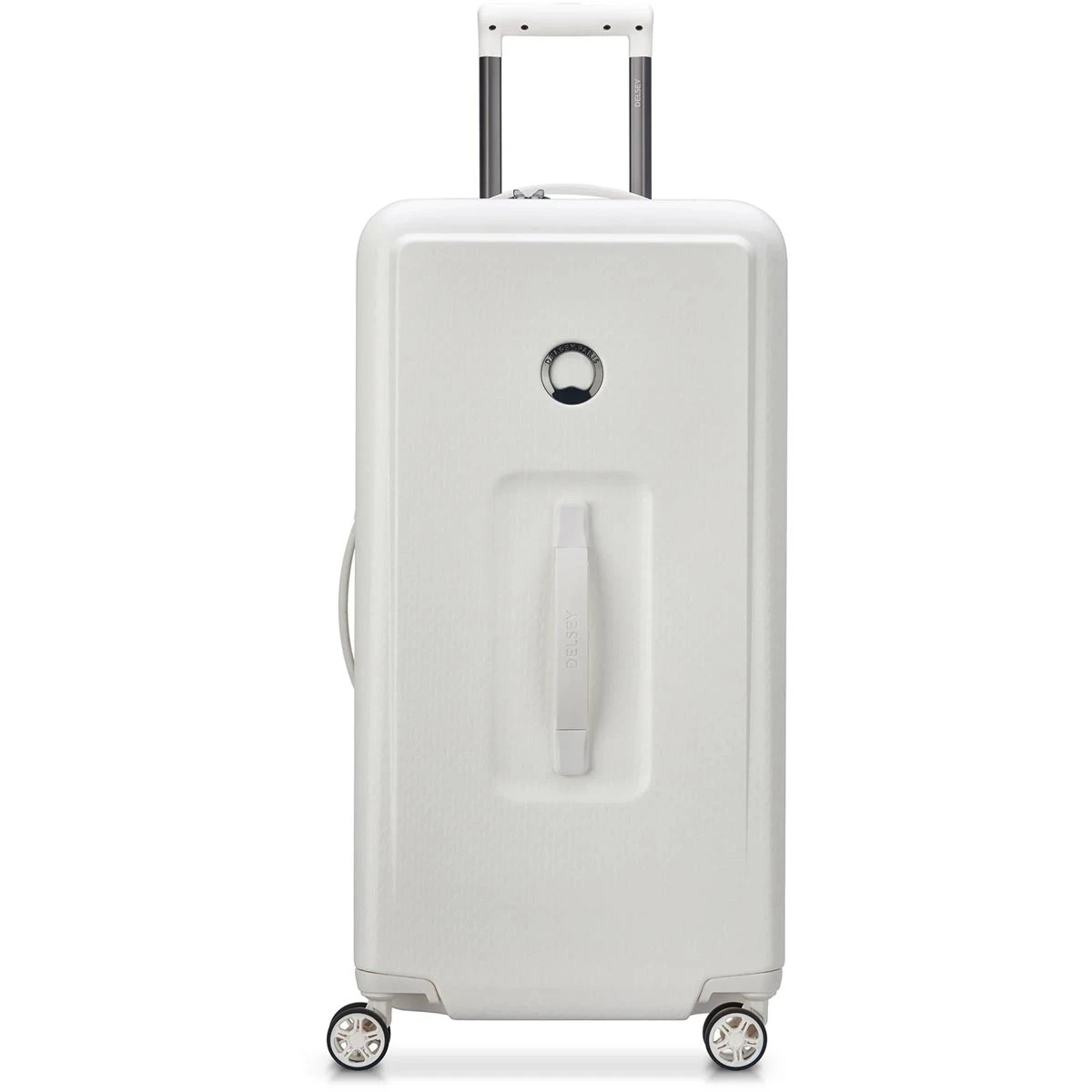 Travelers preparing for an extended stay will love the Delsey Turenne 26″ Medium Trunk Spinner. This innovative and sturdy trunk format is made from 100% polycarbonate and includes a 30/70 opening to accommodate larger items, as well as lined dividers to keep belongings in place.