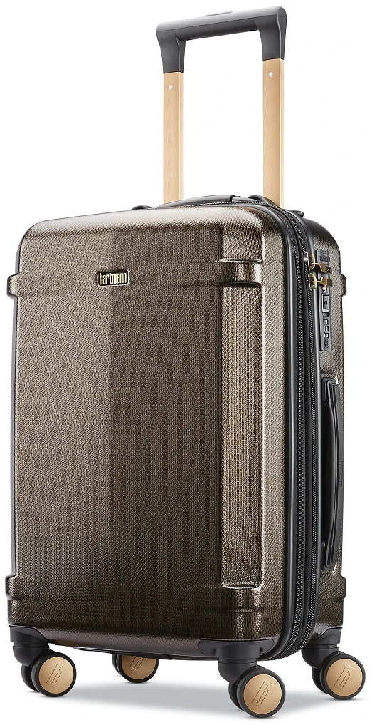 Sophisticated and well designed, the Hartmann Century Deluxe expandable carry on spinner luggage is ideal for shorter trips. It is sophisticated with the micro-diamond finish that keeps it scratch resistant. This Hartmann Century Deluxe luggage has dual spinner wheels that glide beside you effortlessly as you walk to your destination. It has a very convenient padded trifold suiter for packing garments on your own hangers. With a TSA approved combination lock, you’re all set for every journey with the Hartmann Century Deluxe carry on expandable spinner luggage! We include FREE shipping and a FREE leather luggage tag monogrammed for you with your initials.