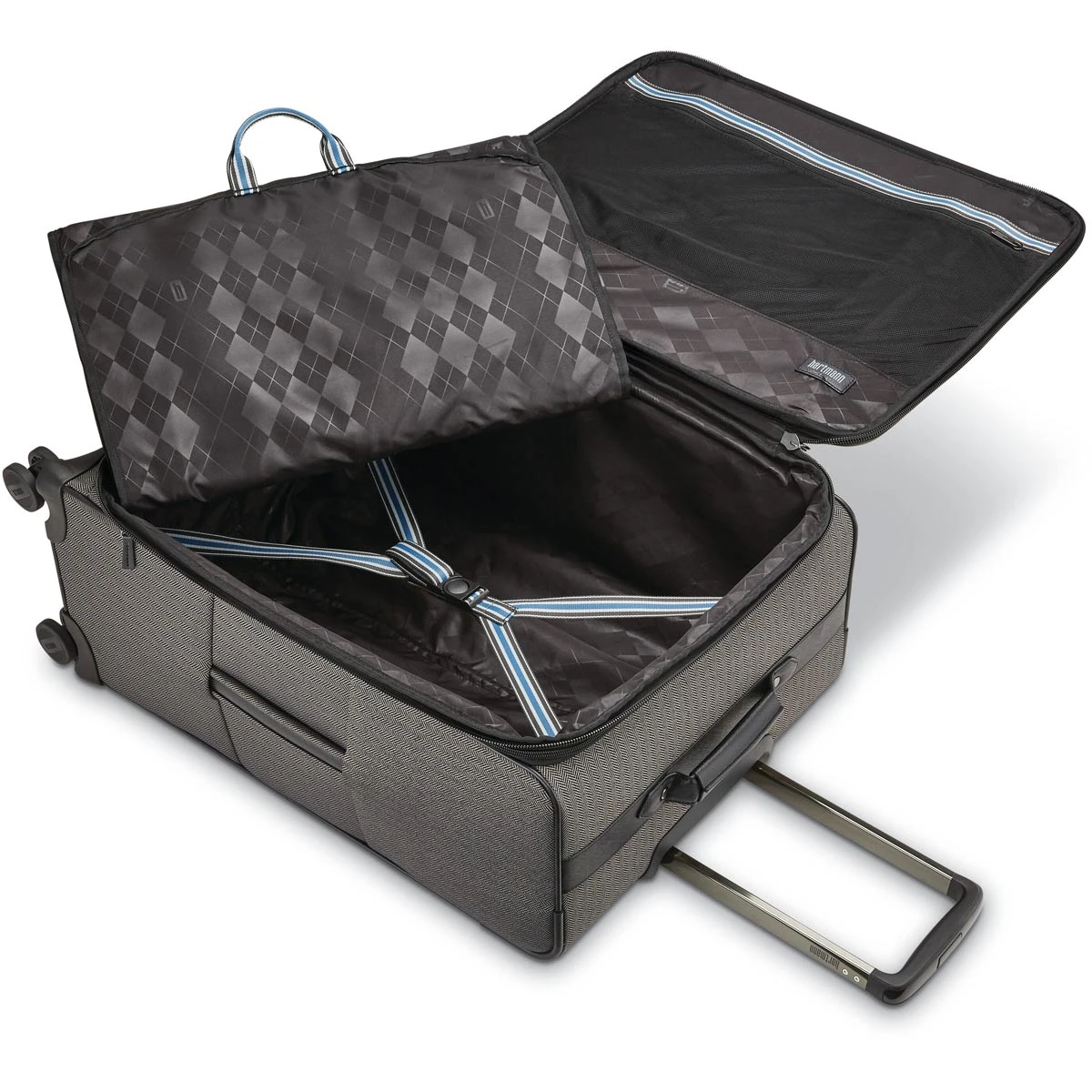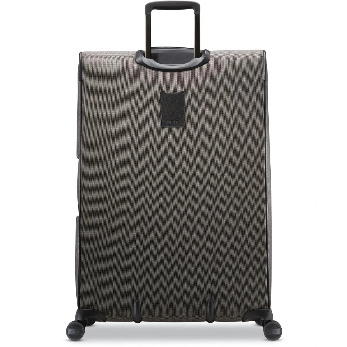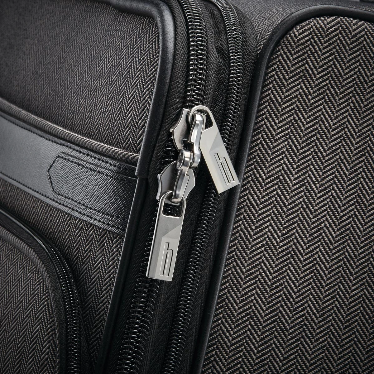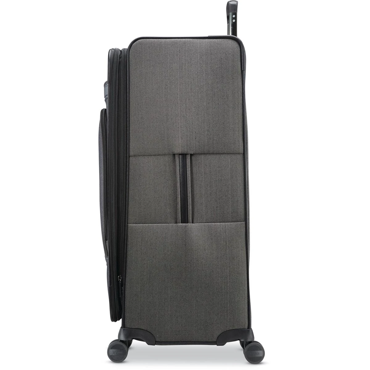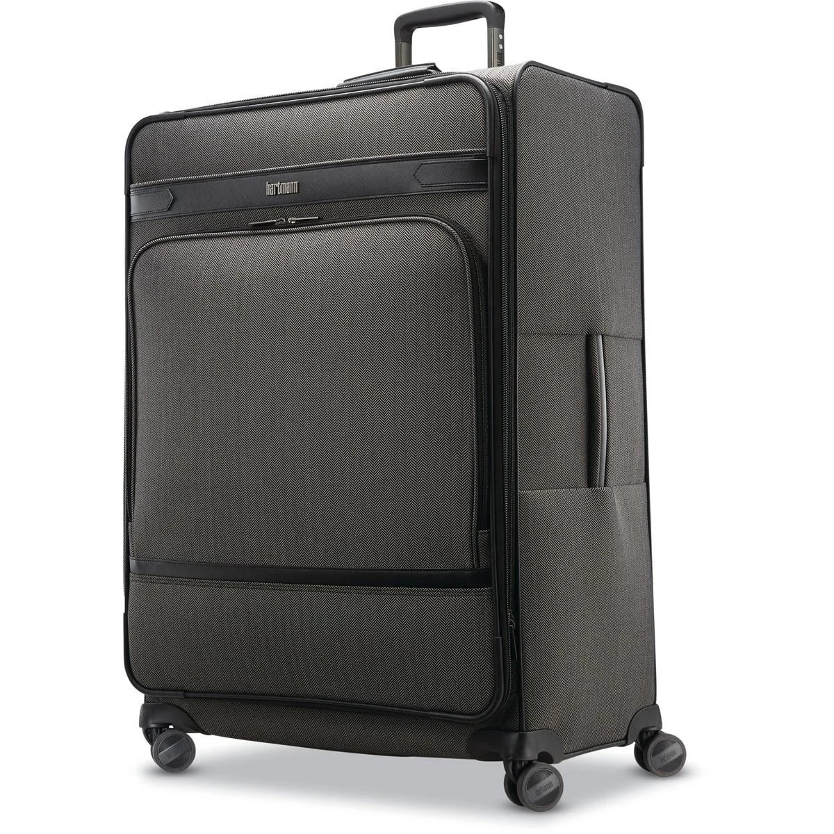 suitcaseThe Hartmann Herringbone Deluxe Long Journey Expandable Spinner fits all of your belongings in distinctive style. Hartmann signature herringbone fabric and interior Ducord™ striped accents lend a bespoke look, while a padded tri-fold suiter, cross straps, and zippered pockets ensure packing organization.