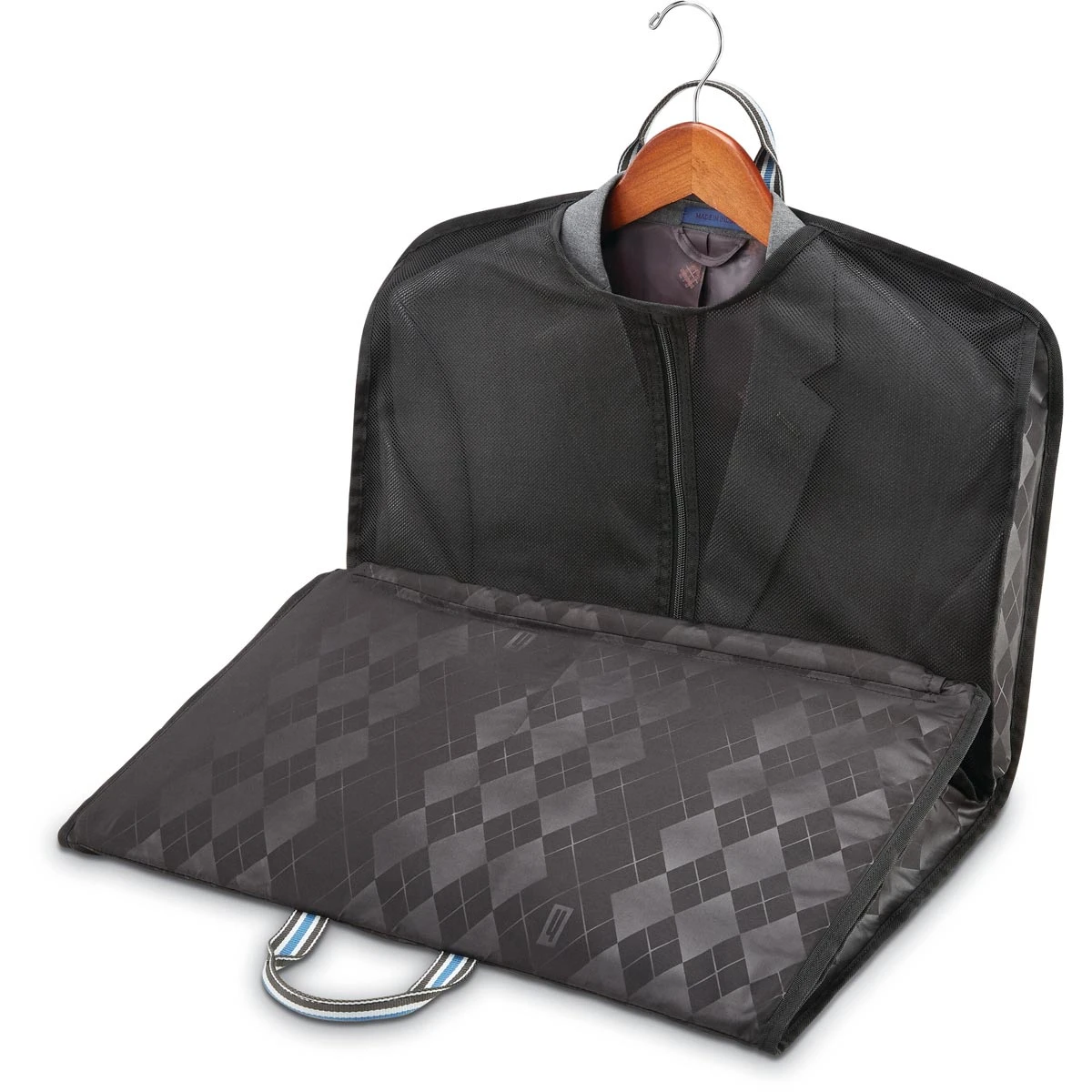 - Monogrammed lining with signature Heritage Ducord™ striped accents, spacious packing compartment with pockets for neat organization, padded tri-fold garment suiter, adjustable cross straps for keeping belongings secured.