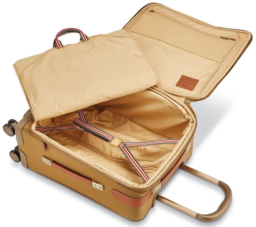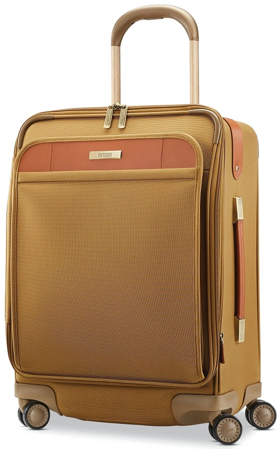 The Hartmann Ratio Classic Deluxe Domestic Carry on expandable spinner luggage is the way to always go first class. Made of durable 1050 ballistic nylon, this Hartmann luggage has full grain leather trim and brass finished hardware. The interior has a suiter for virtually wrinkle free packing. Use the handy outside pocket for last minute packing. With dual spinner wheels, you can roll the Hartmann Ratio Classic deluxe 2 carry on luggage conveniently in any direction. Travel elegantly and luxuriously with Hartmann Ratio Classic Deluxe 2 carry on luggage! We include a FREE leather luggage tag monogrammed with your initials and shipping is FREE of charge.