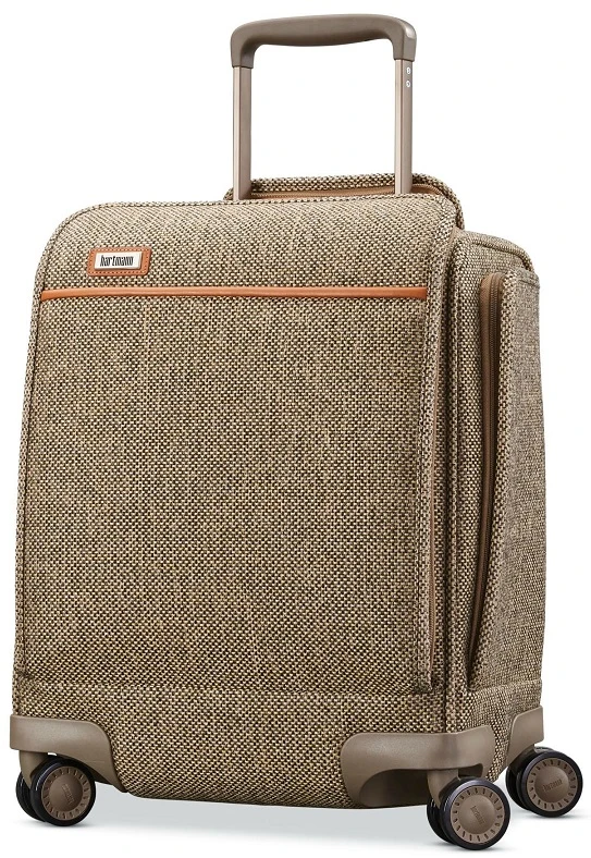 No matter where you journey, you’ll appreciate the convenience and traveling ease of the Hartmann Tweed Legend underseat carry on spinner luggage. This compact carry on is designed to bring on board most domestic, international and commuter flights conveniently. It is easily to fit in overhead compartments and even under some seats in front of you. The Hartmann Tweed carry on has spinner wheels that easily glide down the aisle of planes and trains and roll beside you while waiting on long lines or rushing to your destination. We include a FREE leather luggage tag monogrammed exclusively for you with your initials and shipping is FREE.