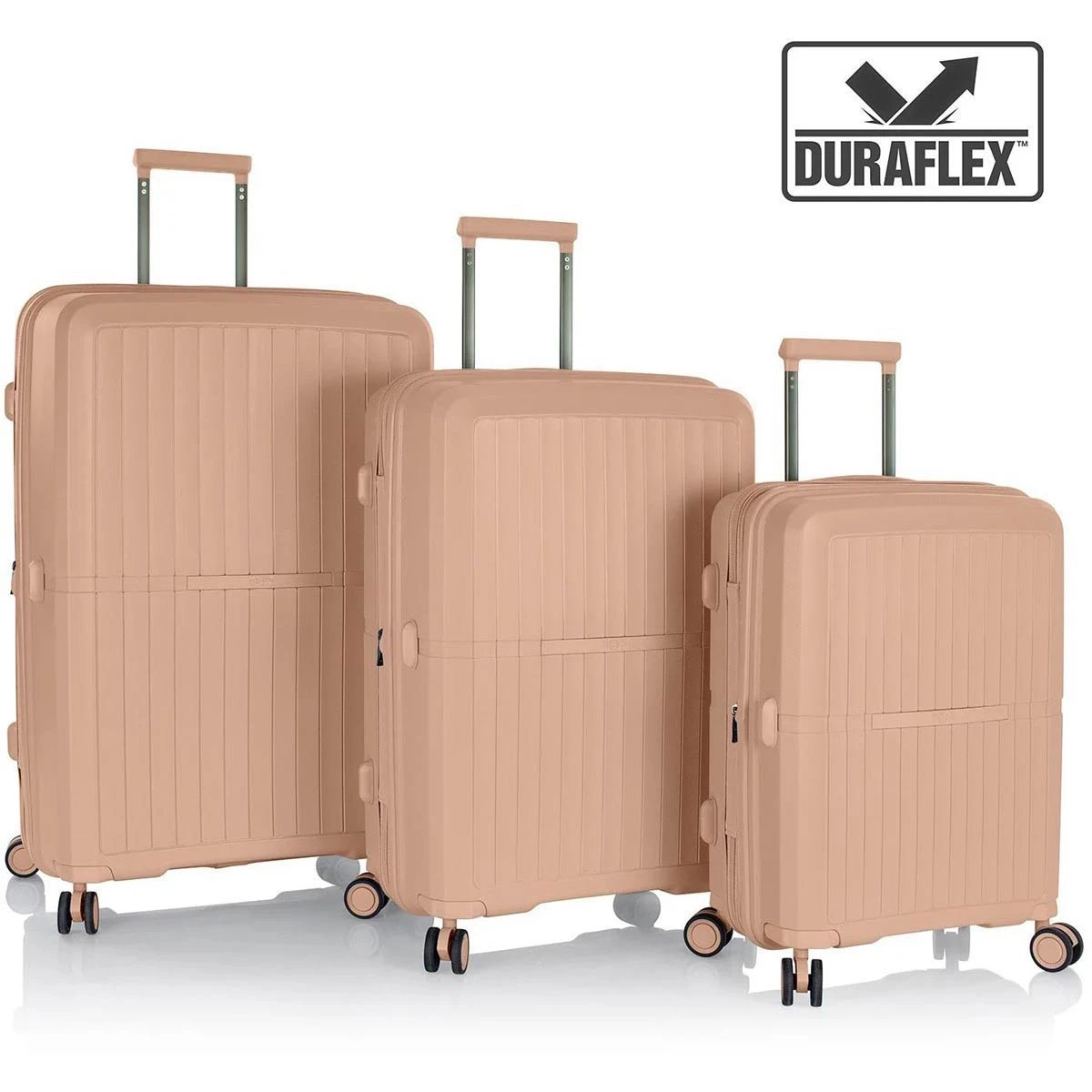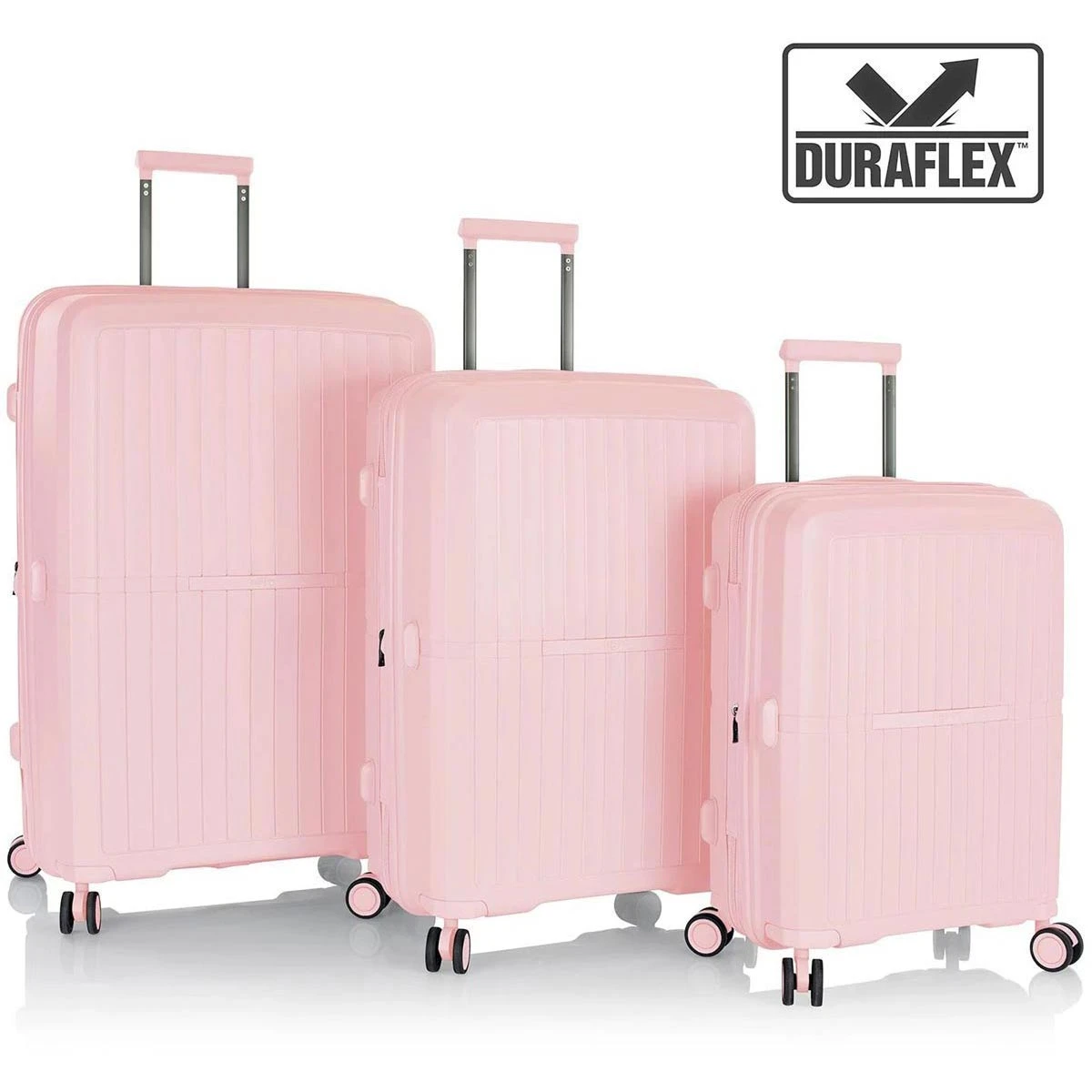 - Available in six subtle shades with a matte sheen and stylish colour-matching wheels, handles, lock, zippers and trim.