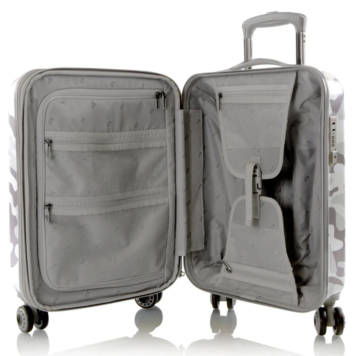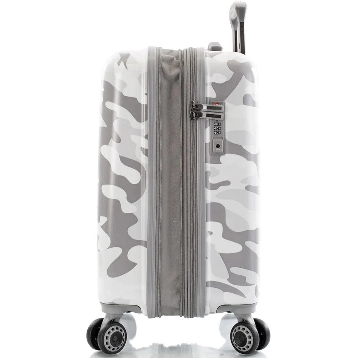 Heys popular ‘Fashion Spinners®’ luggage – it’s been completely redesigned from the ground up with all-new features! It’s made from a lightweight, durable and impact-resistant material that features a trendy White Camo print. It has a fully lined interior with stylish patterned fabric, multiple zippered pockets and allows for an extra 20% in capacity when the expansion system is unzipped. The robust 360° spinner wheels allow for effortless motion in different terrains and the top and side handles are gel cushioned for extra comfort.