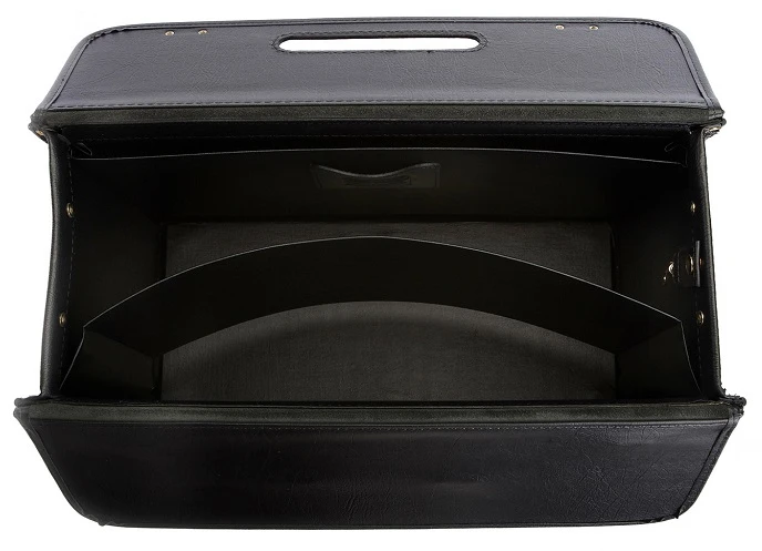 Well made and popular priced, the Korchmar advocate vinyl 18″ catalog case is popular with lawyers, accountants, pilots, salesman, etc. The Korchmar Advocate 18″ litigation case is made of coated vinyl and has a leather hinge and leather handle for unsurpassed quality. It has brass hardware and brass three dial combination locks to keep everything inside secure. This is the Korchmar Advocate 18″ catalog or litigation case often chosen for its sleek good looks. FREE shipping is included along with a FREE leather bag tag monogrammed with your initials so you can quickly identify this bag as yours.