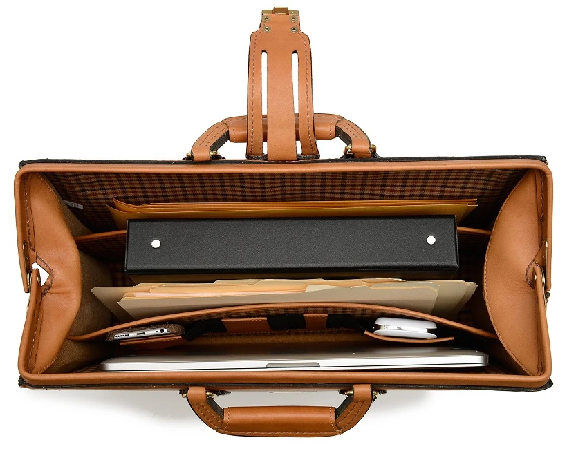 Constructed of full grain belting leather and fully leather lined, this is the Korchmar Churchill Classic briefcase designed as the business solution for those that carry it all. It is feature rich and built to last made of durable fine belting leather with solid brass or nickel hardware. You’ll enjoy the impeccable functionality and performance of the Korchmar Churchill Classic leather briefcase. Lawyers and accountants especially appreciate the roomy design of this Korchmar Churchill Classic leather briefcase! This efficient lawyers brief has double leather handles, a secure combination lock, and extra leather around the corners! Shipping is FREE of charge! We also include a FREE leather bag tag monogrammed exclusively for you with your initials so everyone will know this handsome Korchmar Churchill Classic briefcase is yours.