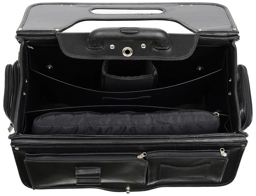 - Exterior literature pocket on back; Zippered end pockets (one with organizer features, one expandable)