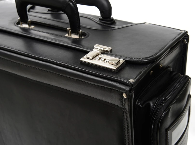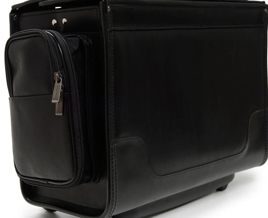 This is the traditional size in the Korchmar Counselor leather 18″ wheeled litigation case. It is made of full grain heavy American steerhide, built for enduring quality and performance. The leather carry handle on the Korchmar Counselor 18″ wheeled litigation case has a steel core! The bag has nickel plated solid brassl hardware that is tough and handsome! Busy lawyers and accountants especially appreciate the quality and design of the Korchmar leather 18″ wheeled case. It can also be used as a catalog case and/or pilots case. We include a FREE leather baggage tag that we monogram exclusively for you with your initials and shipping is FREE of charge! You want everyone to know this handsome Korchmar Counselor leather wheeled litigation case is yours!