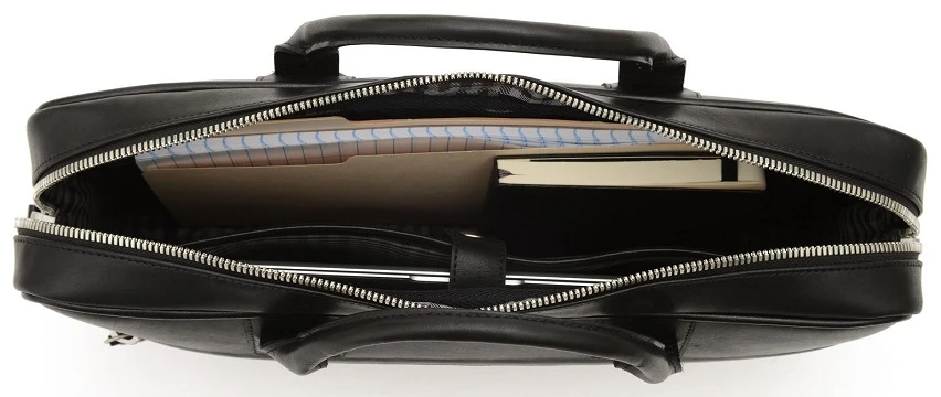 Lighten your load and suit your style with the Korchmar Dylan leather briefcase! Handsome looks and design features make the Korchmar Dylan leather briefcase the bag of choice. It has a padded laptop pocket and is easy to carry by the double handles and the removable shoulder strap. It also has a piggyback strap so you can slip the Korchmar Dylan leather briefcase securely over the trolley handle of your wheeled luggage! Make a great impression everywhere with the Korchmar Dylan leather briefcase! We include FREE shipping and a FREE leather bag tag monogrammed with your initials!