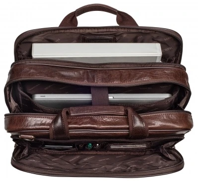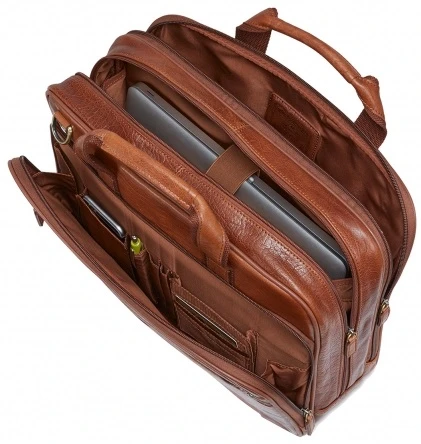 Traditional styling with modern features, the Mancini Arizona leather double compartment laptop briefcase makes the right impression at important meetings. With double carry handles, a removable adjustable padded shoulder strap, and an attach-a-bag features that lets you slip the Mancini Arizona leather double compartment laptop briefcase over the trolley handle of your wheeled luggage, you’re all set wherever you go. Multiple pockets and compartments keep you well organized and efficient everywhere. It has a dedicated, padded laptop compartment and tablet pocket. We include FREE shipping and a FREE leather tag monogrammed with your initials so everyone will know this handsome Mancini Arizona briefcase is yours!