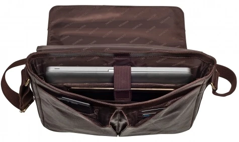 Businessmen and women impress when they carry the Mancini Arizona leather laptop messenger bag! Made of luxurious vegetable tanned buffalo leather, it is carried easily by the adjustable padded shoulder strap. You can also slip the Mancini Arizona leather laptop messenger bag over the trolley handle of your rolling luggage securely with the built-in attach-a-bag strap. It has designer nylon lining and convenient pockets and compartments to keep you well organized. There are folder pockets and a padded laptop and tablet compartment. We include FREE shipping and a FREE leather tag monogrammed with your initials for easy identification of your Mancini Arizona laptop messenger bag!