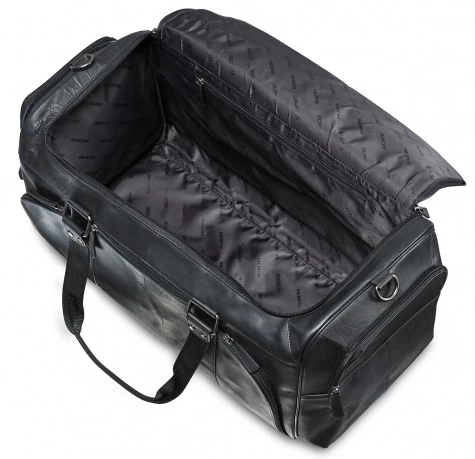 Engineered for quality, the Mancini Buffalo leather duffel bag is designed for quick weekend trips. Spacious, it is carried easily by the double handles, the removable adjustable shoulder strap, or you can slip it over the trolley handle of your rolling luggage with the add-a-bag strap on the rear! Made of luxurious top grain, waxy buffalo leather, the Mancini duffel bag is built to go. With interior and exterior zippered pockets, you can keep your essentials in the Mancini Buffalo leather duffel bag close at hand! We include FREE shipping and a FREE tag monogrammed with your initials for quick identification of your Mancini buffalo leather duffel bag wherever you journey.