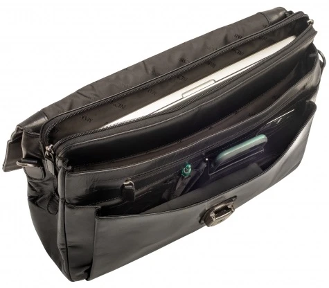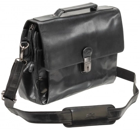 With the distinctive combination of design and functionality, the Mancini Buffalo Leather triple compartment laptop briefcase is designed for busy executives. It has an attach-a-bag strap on the back to secure the briefcase to your rolling luggage! It is also carried with ease with the removable adjustable padded shoulder strap or the heavy duty top handle. With handy pockets and compartments inside, you will always be organized. The Mancini Buffalo Leather triple compartment laptop briefcase has a padded compartment as well as a zippered pocket on the front and back. There is also an RFID blocking pocket to protect your passport and credit cards from radio frequency ID theft! We include FREE shipping and a FREE leather tag monogrammed with your initials for easy identification of your Mancini briefcase!