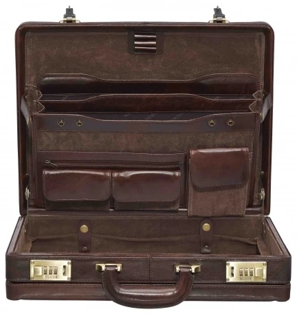 Truly handsome and well designed, the Mancini Vanizia expandable leather attache case is the way to “wow” them at important meetings. The Mancini Vanizia expandable leather attache case has an adjustable file organizer and a business organizer to keep you well organized and efficient. With two combination locks, everything inside is keep securely. Best of all, if you need to carry more you can easily expand this Mancini Vanizia leather attache case or keep it smaller when you are carrying less. We include FREE shipping and a FREE leather tag monogrammed with your own initials for quick identification everywhere!