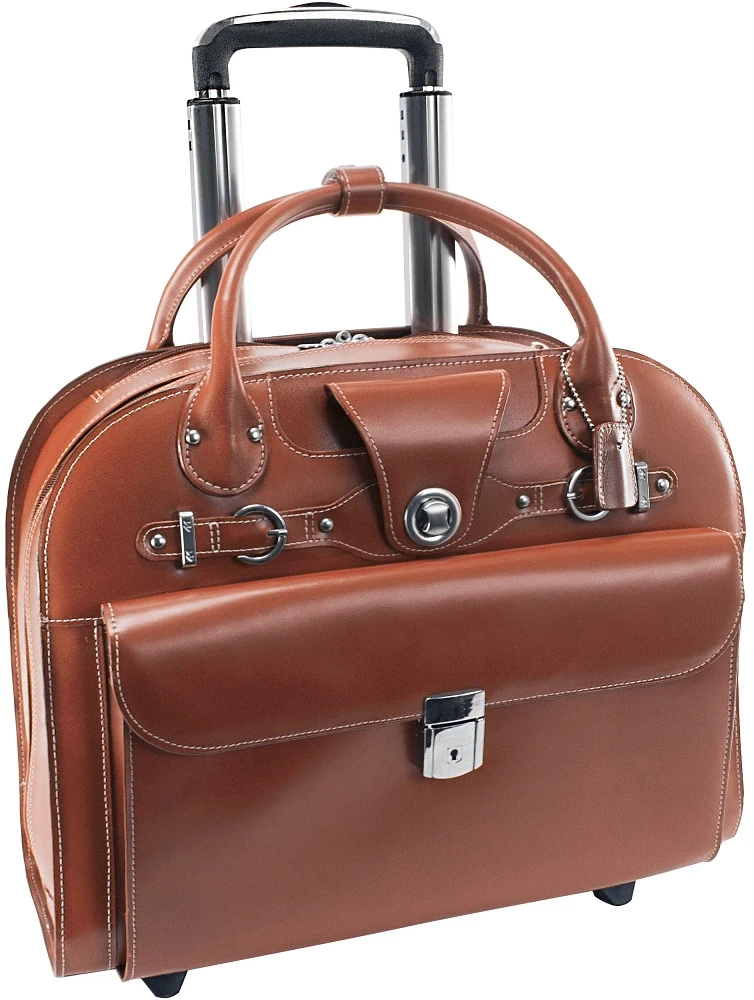 Traditional and elegant, the McKlein L Series Edgebrook wheeled ladies laptop briefcase is very professional! Those women executives who appreciate great value and design do appreciate the features found in this innovative McKlein briefcase! You can use it with or without the wheel system. It weighs a lightweight 6.6 pounds. It has efficient pockets and compartments to keep you well organized at all times! This handsome McKlein L Series SALE briefcase even has a pocket you can lock! We include FREE shipping and a FREE leather bag tag monogrammed with your own initials.