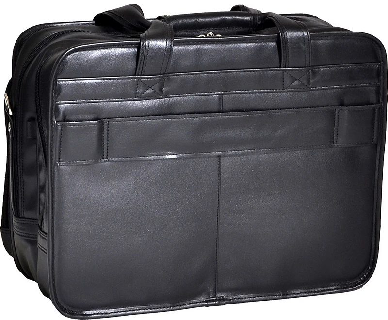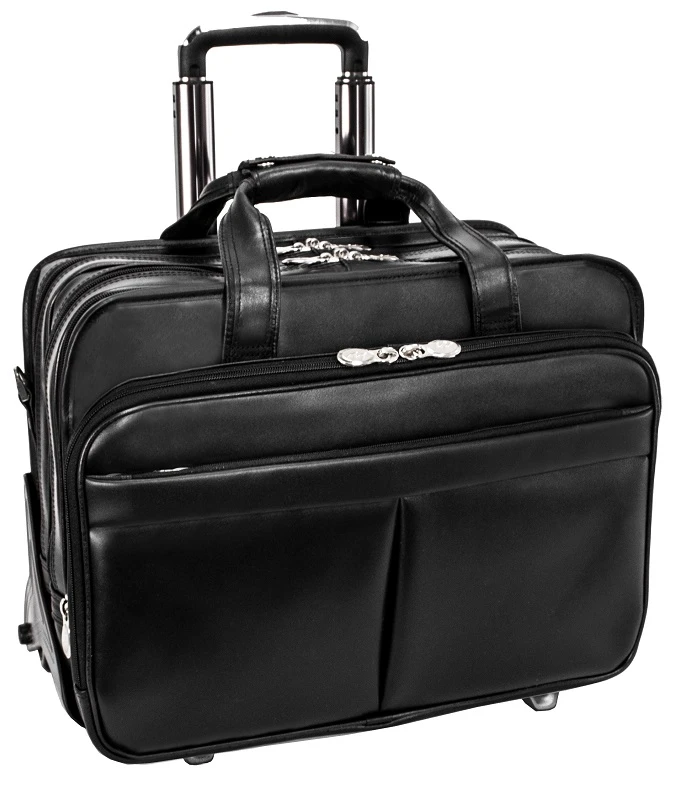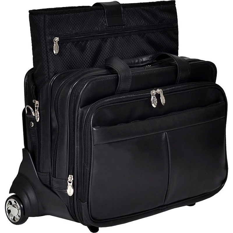 You can conveniently use this McKlein R Series Roosevelt leather wheeled briefcase with wheels or without! Take this McKlein brief with you when traveling. It also has a removable shoulder strap. Function and organization are apparent in the McKlein leather briefcase. It is lightweight with and without the wheels and well designed for all of your business needs. Made of full grain cowhide leather, this McKlein leather wheeled brief offers great value and remarkable design features. We include FREE shipping and a FREE leather bag tag that we monogram for you with your own initials.