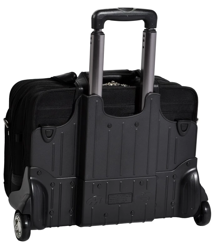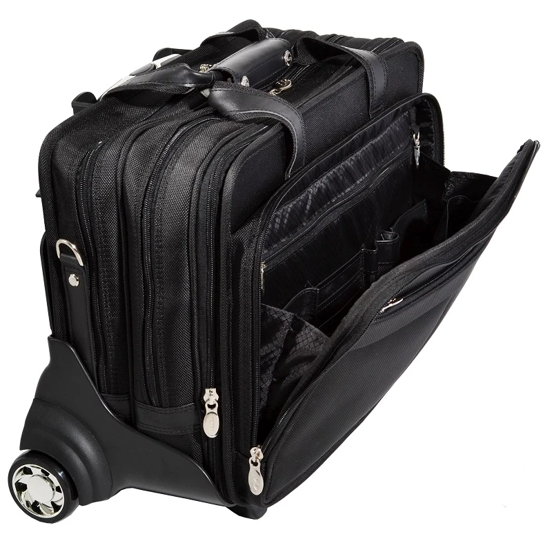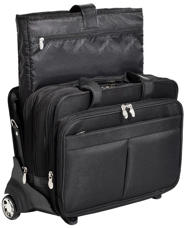 The wheels and trolley handle are removable giving you two briefcases in one! When traveling, you can also slide the briefcase over the trolley handle of your rolling luggage. McKlein briefcases are made with your needs in mind! There are multiple and efficient pockets to keep you well organized. Use the handy outside pockets for items you need close at hand. Always make the right impression with a McKlein briefcase! We include FREE shipping and a FREE leather bag tag with your initials monogrammed.