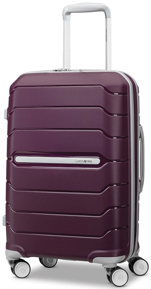 Outstanding in looks and design, take this Samsonite Freeform 21″ carry on spinner for all of your quick trips. It is designed to take on board most domestic flights! You can easily glide the Samsonite Freeform carry on spinner luggage down the aisle of planes and trains. With dual spinner wheel, the Samsonite Freeform carry on spinner luggage rolls along easily in any direction you want to go. Lightweight at just 6.5 pounds, you’ll travel often with Samsonite Freeform carry on luggage! It’s on SALE at low prices and designed to make every trip enjoyable! We include FREE shipping and a FREE leather luggage tag monogrammed with your initials for easy identification of your Samsonite Freeform 21″ carry on spinner wherever you journey.