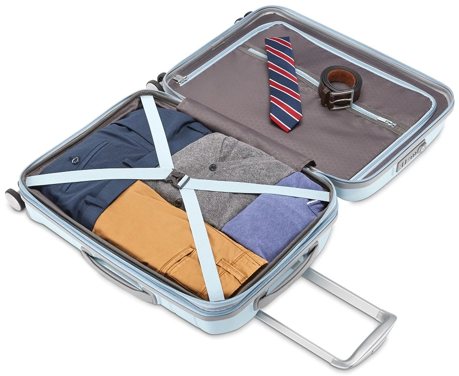 - Samsonite polypropylene shell is impact resistant and extremely lightweight