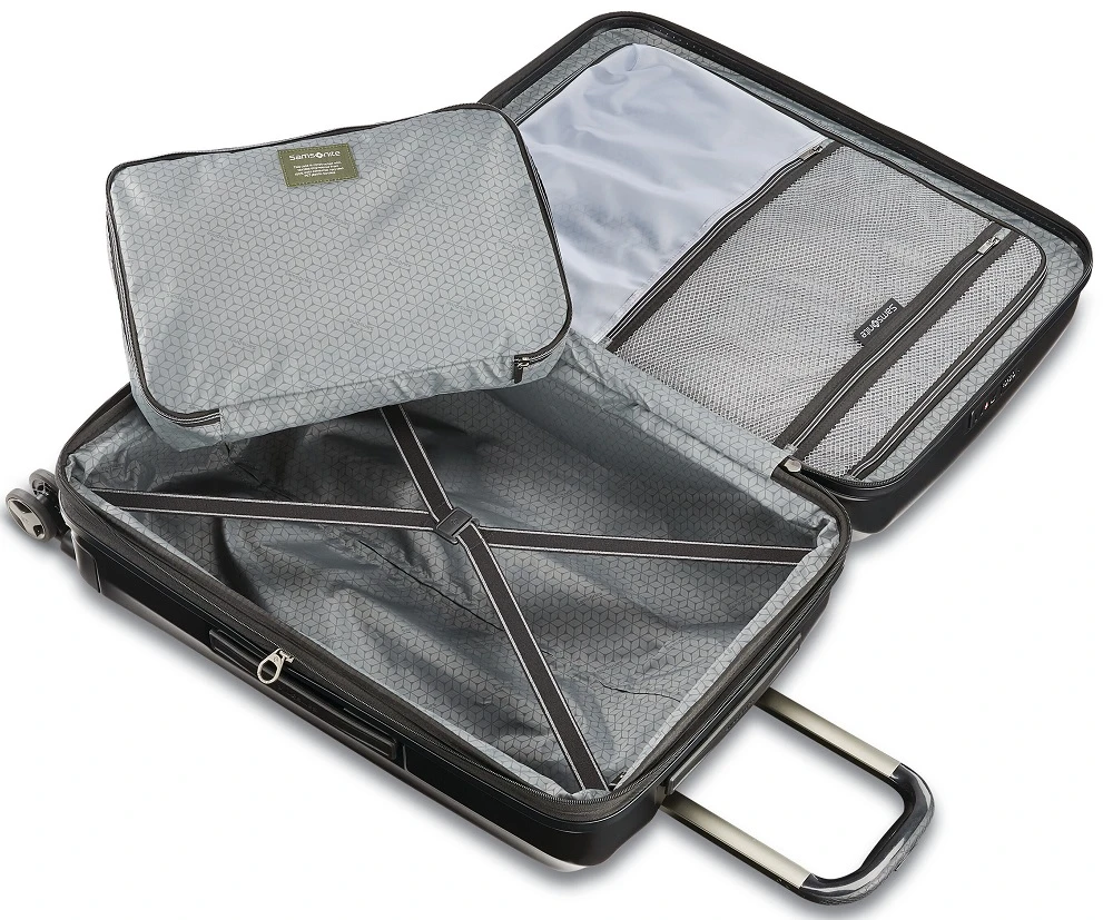The perfect size for a week or ten days, the Samsonite Octiv medium spinner is designed for your traveling ease. Made of 100% polycarbonate, it has a built-in TSA approved combination lock. It can be expanded when you need even more packing space or plan to bring back souvenirs. The interior of the Samsonite Octiv medium spinner luggage has an organized interior for packing ease. With dual spinner wheels, glide the Samsonite Octiv medium luggage along easily in any direction. It will roll beside you as you walk to your destination. We include FREE shipping and a FREE leather luggage tag monogrammed with your initials so you can quickly identify your Samsonite Octiv medium spinner wherever you travel!