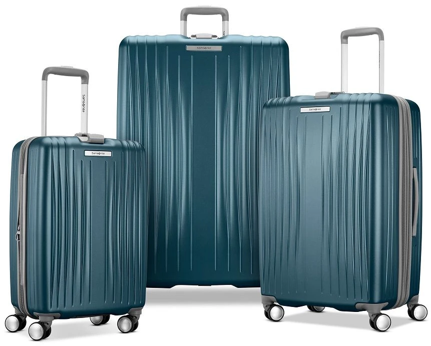 Get ready to explore the world with the latest addition, the Samsonite Opto PC 3 spinner 3-piece luggage set! The Samsonite Opto PC 3 spinner 3-piece luggage set is made of durable 100% polycarbonate and the pieces can be expanded for extra packing room. With custom engineered dual spinner wheels that have aero-trac suspension, you’ll appreciate the smooth rolling of the Samsonite Opto PC 3 luggage set! You can walk and the bags glide beside you! Each of the larger pieces have a built-in TSA approved combination lock. Packing is convenient in the divided interior of the Samsonite Opto PC spinner 3-piece luggage set to keep you organized. We include FREE shipping and FREE leather tags monogrammed with your own initials for quick identification of your Samsonite Opto PC 3 spinner 3-piece luggage set wherever you journey!
