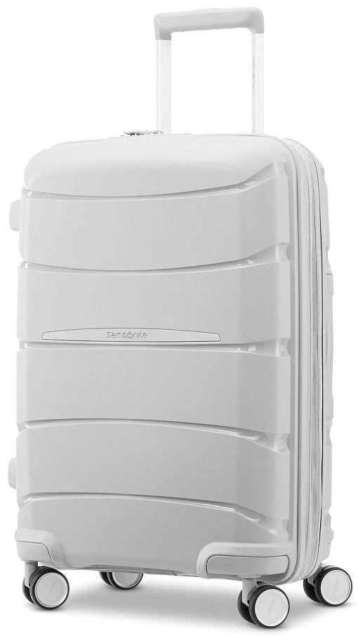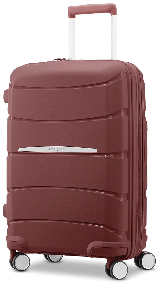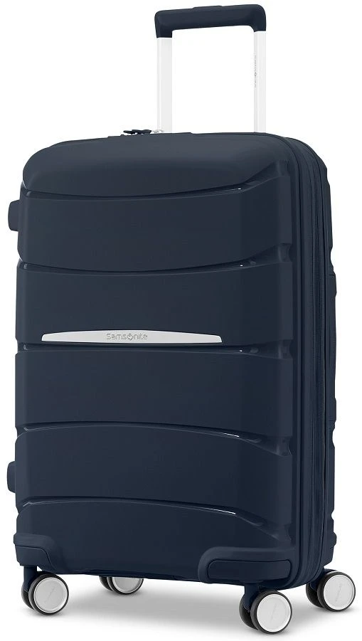 Light in weight at less than six and a half pounds, the Samsonite Outline Pro carry on spinner luggage is built to travel conveniently and easily. The premium, custom engineered dual spinner wheels glide effortlessly in any direction. You can glide down the aisle of the plane or trains smoothly. Best of all, the interior fabric is made of 100% recycled plastic bottles and it has anti-microbial handle technology which suppress the growth of bacteria. The Samsonite Outline Pro carry on spinner luggage has a USB port and a built-in TSA approved combination lock. The interior panel divider has a compression system to maximize your packing space. We include FREE shipping and a FREE leather luggage tag monogrammed with your initials for easy identification of your Samsonite Outline Pro carry on spinner wherever you journey!