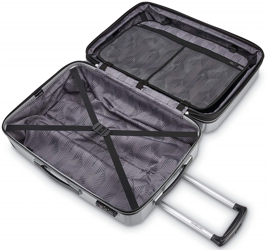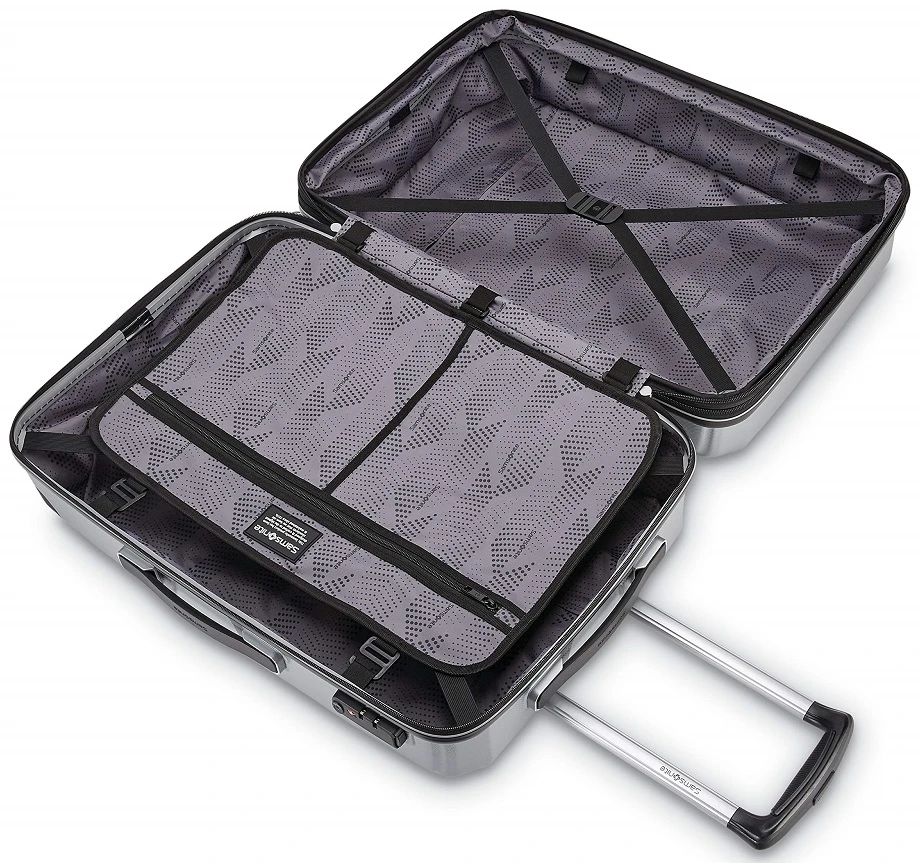 - Samsonite 100% Polycarbonate shell is impact resistant and extremely lightweight