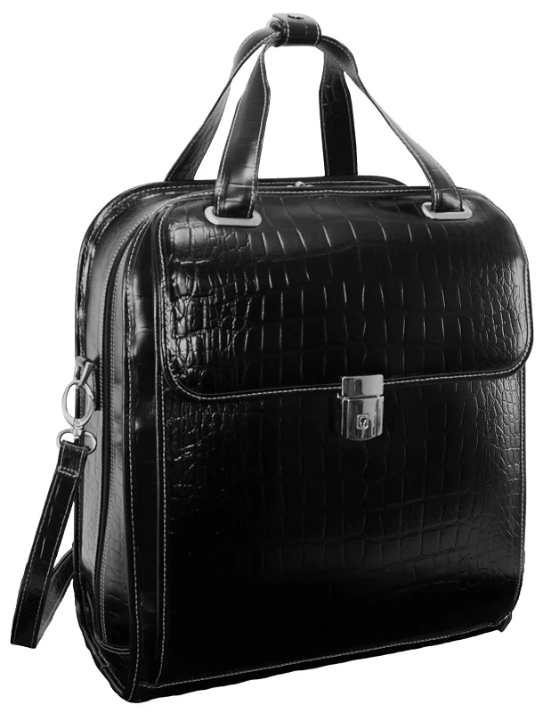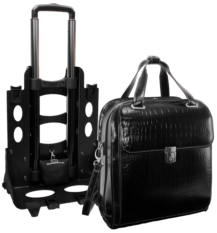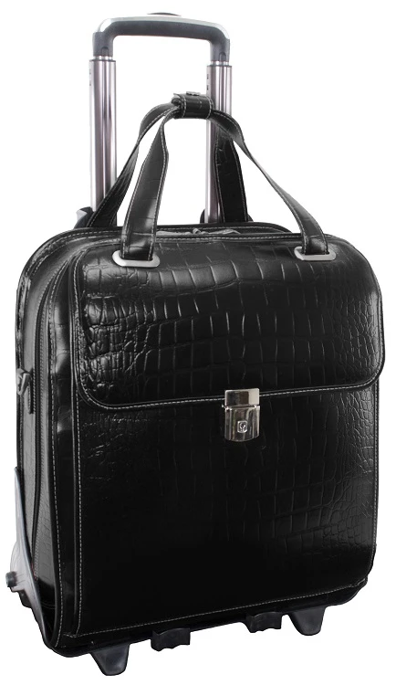 Very elegant and professional, the Siamod Novembre detachable wheeled ladies briefcase is well priced and well designed. Carry it alone as a briefcase, or when you need the mobility, just add the wheels and trolley handle. It is light in weight and very functional. Made of Italian Croco leather, this Siamod detachable wheeled ladies brief is eye-catching and always makes the right statement. We include FREE shipping and a FREE leather bag tag with your initials monogrammed.