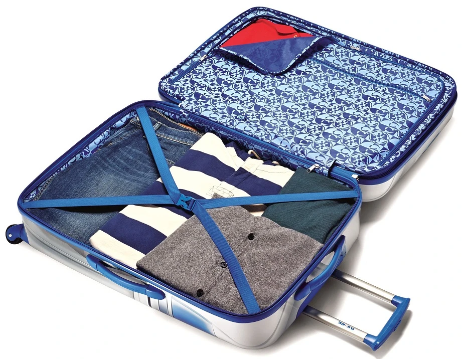 Be narly and chillin’ when you travel with the Star Wars R2-D2 hardside 21″ spinner luggage! This is the way to journey near and far and be cool! Made by American Tourister, the Star Wars R2-D2 hardside 21″ spinner luggage is made of polycarbonate composite with a high gloss finish to keep it scratch resistant. The interior is divided for organized packing and the spinner wheels allow for easy rolling right along beside you and in any direction! You can expand the Star Wars R2-D2 hardside 21″ spinner luggage another 25% when you need more room, but you may not be able to take it on board when made larger. Enjoy every journey with the Star Wars R2-D2 hardside 21″ spinner luggage! We include FREE shipping and a FREE leather luggage tag monogrammed with your initials so everyone will know the Star Wars R2-D2 hardside 21″ spinner is yours!