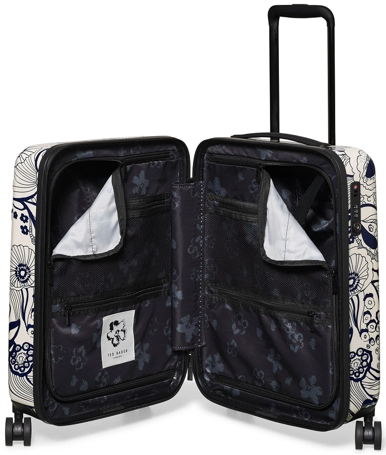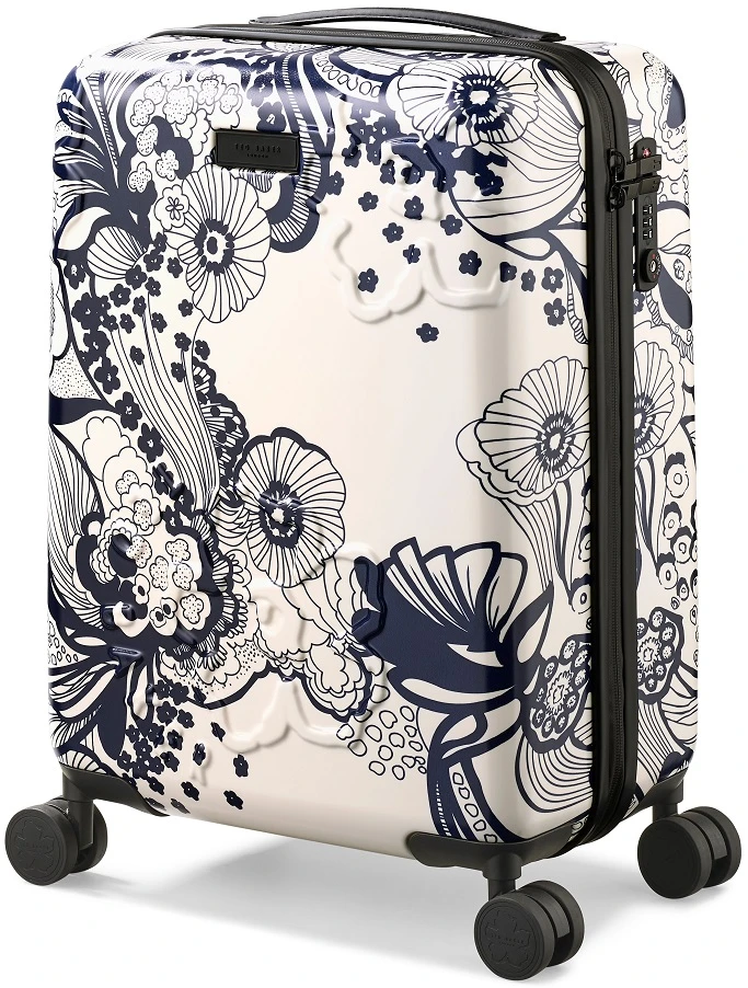Make an elegant statement and travel often with the Ted Baker Magnola Retro Floral Swirl small hardside spinner luggage. Lightweight at less than five and half pounds, the Ted Baker Magnola Retro Floral Swirl small hardside spinner luggage is sized to take on board domesitc and international flights. With four dual wheels, the Ted Baker Magnola Retro Floral Swirl small hardside spinner luggage easily glides down the aisle of planes and trains! It will glide beside you waiting on slow moving lines or rushing through to your destination. Ted Baker Magnola Retro Floral Swirl small hardside spinner luggage is made of 100% Makrolon polycarbonate with a high gloss finish, it is durable and scratch resistant. We include FREE shipping and a FREE leather luggage tag monogrammed exclusively for you with your own initials for easy identification of your Ted Baker Magnola Retro Floral Swirl small hardside spinner wherever you journey.