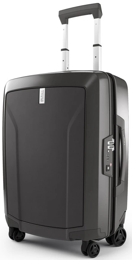 For short trips, pack up the Thule Revolve wide-body carry on spinner luggage and travel in style! Made in Europe of 100% virgin polycarbonate, the Thule Revolve wide-body carry on spinner hardside luggage is impact resistant and the zippers are puncture resistant! The spinners are smooth rolling with larger rear wheels and smaller front ones that maximize the interior packing space. Travel often and well with Thule Revolve wide-body carry on spinner luggage! We include FREE shipping and a FREE leather luggage tag monogrammed with your initials for quick and easy identification of your Thule Revolve Wide-body carry on spinner wherever you journey.