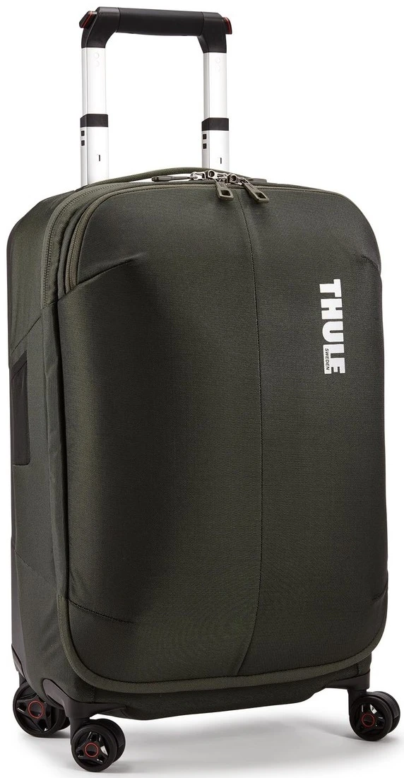 You’ll enjoy long weekends and quick trips with the Thule Subterra carry on spinner luggage. It is sized to take on board most domestic and international flights and rolls easily down the aisle of planes and trains! The dual spinner wheels will roll along beside you easily or you can pull it behind you too! Lightweight and made of water resistant nylon, you can travel near and far! We include FREE shipping and a FREE leather luggage tag monogrammed with your own initials for quick identification of your Thule Subterra carry on spinner!