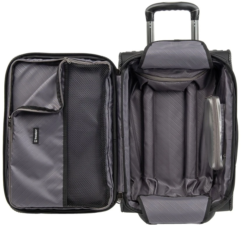 You’ll hit your stride with the Travelpro Crew Expert Global carry on expandable rollaboard! Made of 1680 ballistic nylon, this Travelpro Crew Expert carry on rollaboard is built to travel everywhere. With inline skate wheels, you can easily push or pull the Travelpro Crew Expert carry on luggage along. Made to bring on board most domestic and international flights, the Travelpro Crew expert carry on luggage includes a TSA compliant toiletry kit for your liquids. Padded storage holds your laptop easily. With the add-a-bag strap, you can piggyback your tote and take both on board. We include FREE shipping and a FREE leather luggage tag monogrammed with your initials for quick identification wherever you journey.
