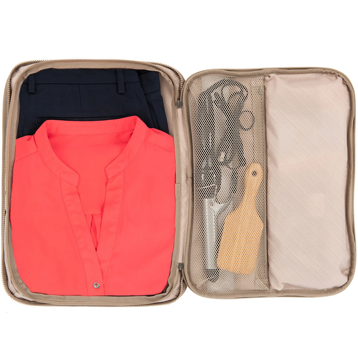- Use the lower accessory pocket to separate and organize smaller clothing articles or other essentials, like cords, hair tools, and more