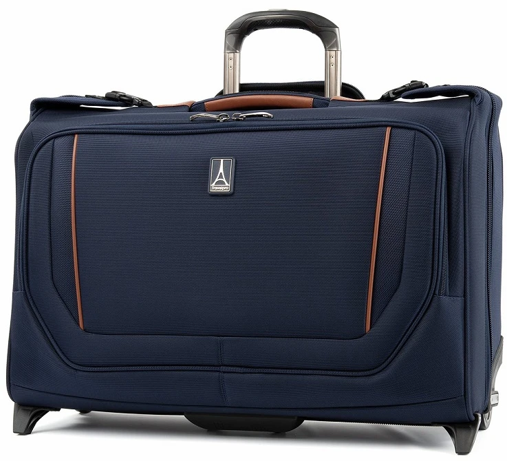 The Travelpro Crew VersaPack carry on rolling garment bag is easy to pack and can be carried on most domestic airlines. Put your suit and shirts inside on your own hangers, and simply fold the bag. The Travelpro Crew VersaPack rolling garment bag will keep your clothes wrinkle free, just put them in neatly! It has two very convenient outside zippered pockets for necessities. The contour grip handle provides superior comfort. The Travelpro Crew VersaPack rolling garment bag is designed to act like your closet. The inline skate wheels will roll easily over multiple types of surfaces to your destination. Made of 1680D ballistic nylon fabric with DuraGuard coating, the Travelpro Crew VersaPack rolling garment bag is stain and abrasion resistant and extremely durable. The zipper pulls are easy to use and are shear-resistant. Shipping on this Travelpro is FREE and we include a FREE leather bag tag monogrammed with your initials for easy identification everywhere you travel.