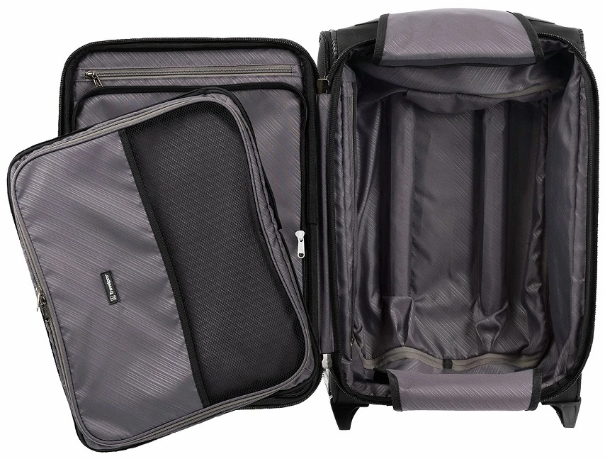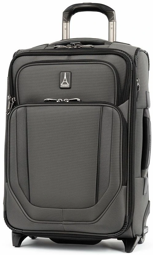 Take the well designed Travelpro Crew VersaPack Global carry on expandable rollaboard on board most domestic and international flights! It is made to fit the template at airports! The Travelpro Crew VersaPack Global carry on rollaboard luggage includes a TSA compliant toiletry kit for your liquids and an attach-a-bag strap that lets you piggyback your briefcase or backpack along. The Travelpro Crew VersaPack global carry on luggage has an external USB port and a large front zippered pocket for easily accessibility. The ball bearing wheels allow for easy pushing or pulling and they can handle bumps along the way and curbs too.