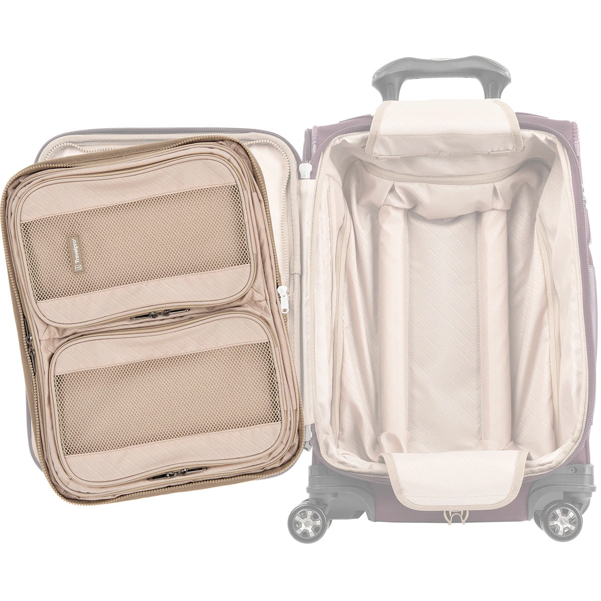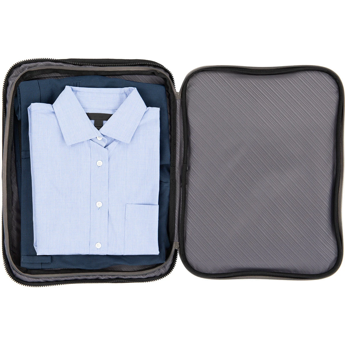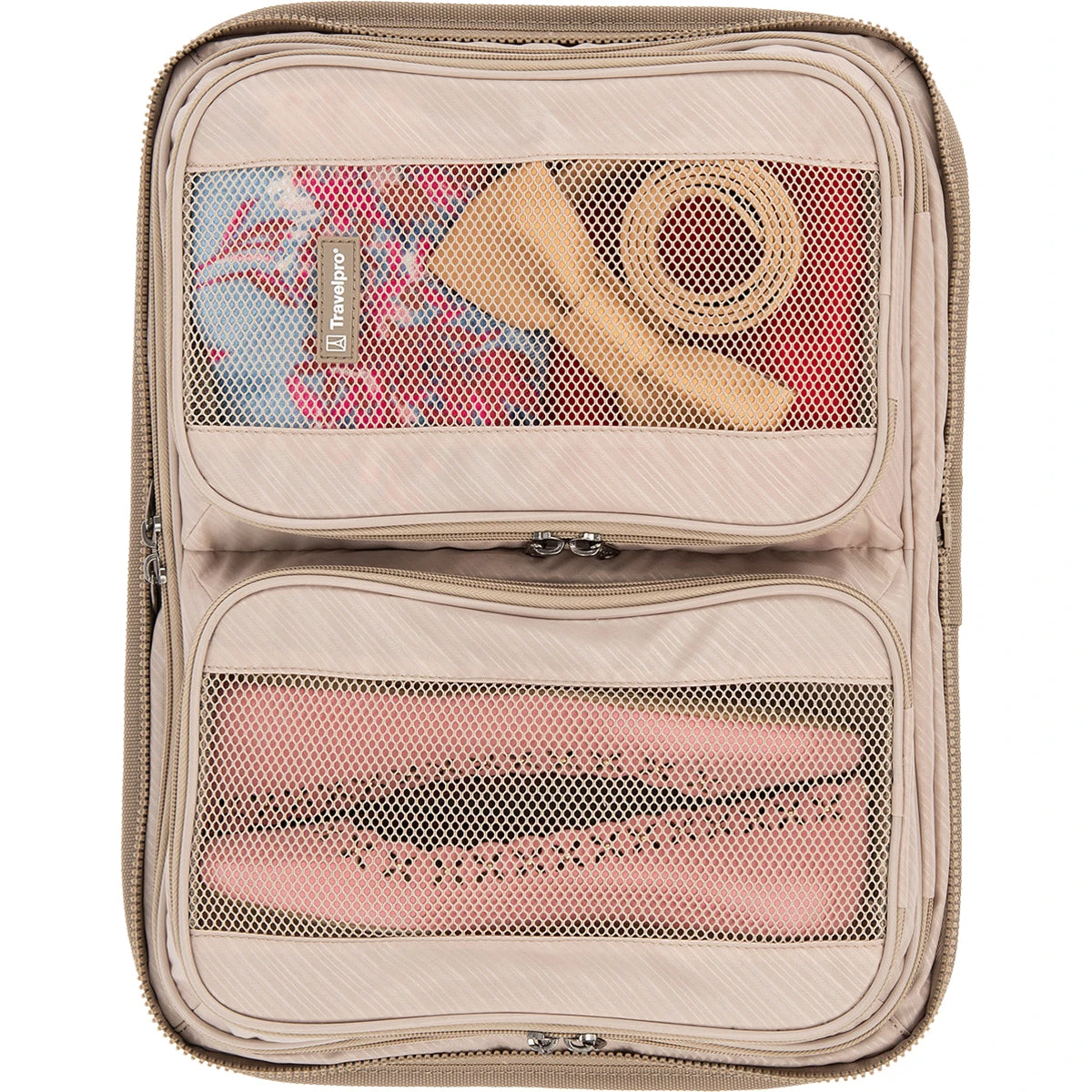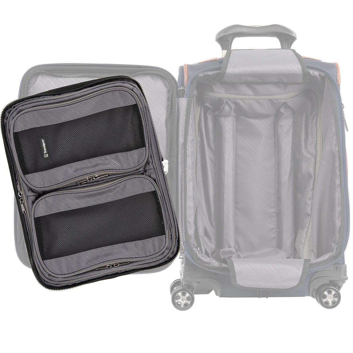 Customize your luggage and stay ultra-organized, wherever you land. The Travelpro® Zip-in Packing Cubes Organizer features two built-in zippered packing cubes–great for packing everything from shorts and shirts to undergarments, accessories, grooming tools, cords and more. Plus, a zippered full-length rear pocket protects shirts and blouses from wrinkling.