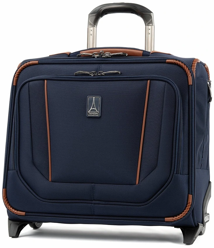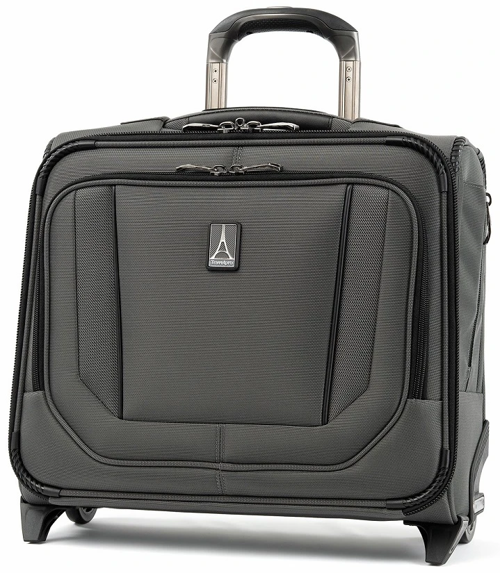 At only 6.75 pounds, the Travelpro Crew versapack rolling laptop tote makes a fabulous business case too. It has an organizer panel built in and a padded laptop sleeve that holds most 15″ laptops. This is also the size approved by Spirit Airlines as their FREE carry on bag. The Crew versapack rolling tote can be pushed or pulled along easily with their high performance wheels. The durable fabric is twist 1680D nylon with DuraGuard coating. It is abrasion and soil resistant and built to travel! Use the tote as an overnight bag too. The top and bottom lift handle is convenient. Use this as your carry on with most domestic and international flights. Pack is up for quick overnight trips or short weekend travel. We include FREE shipping and a FREE leather bag tag monogrammed for you with your initials.