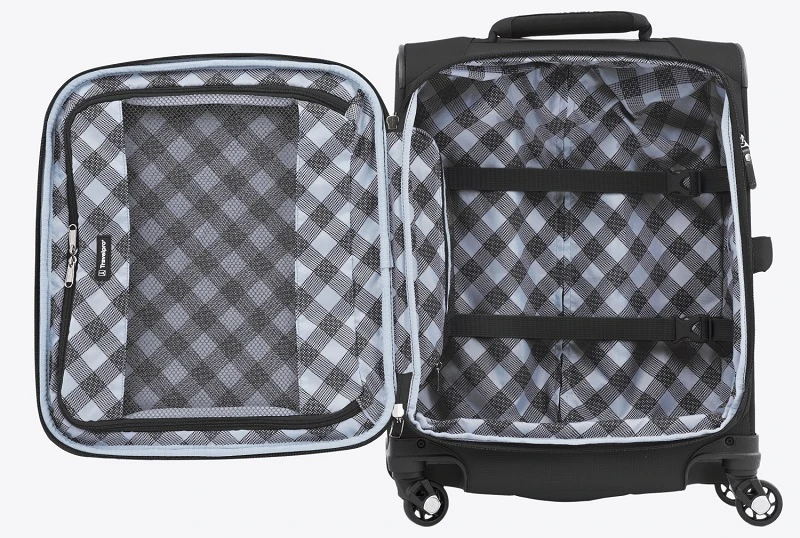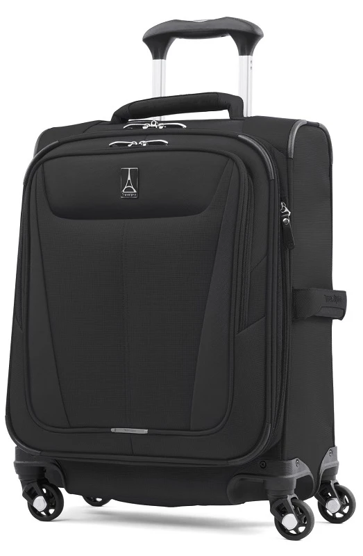 Designed to bring on board most domestic, international and commuter flights, the Travelpro Maxlite 5 international carry on spinner is popular with many frequent travelers. It rolls easily along side you on the spinner wheels and it is very lightweight at 5.3 pounds. The four spinner wheels let you glide the bag down the aisle of planes and trains. The Teravelpro Maxlite 5 international expandable carry on spinner has a very convenient outside zippered pocket for your essentials. This is the intelligent solution for frequent travelers. Shipping is FREE along with a FREE leather bag tag that we monogram with your own initials.