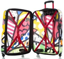 - 2 large interior zippered pockets (one mesh) and 2 corner pockets, Tie-down straps
