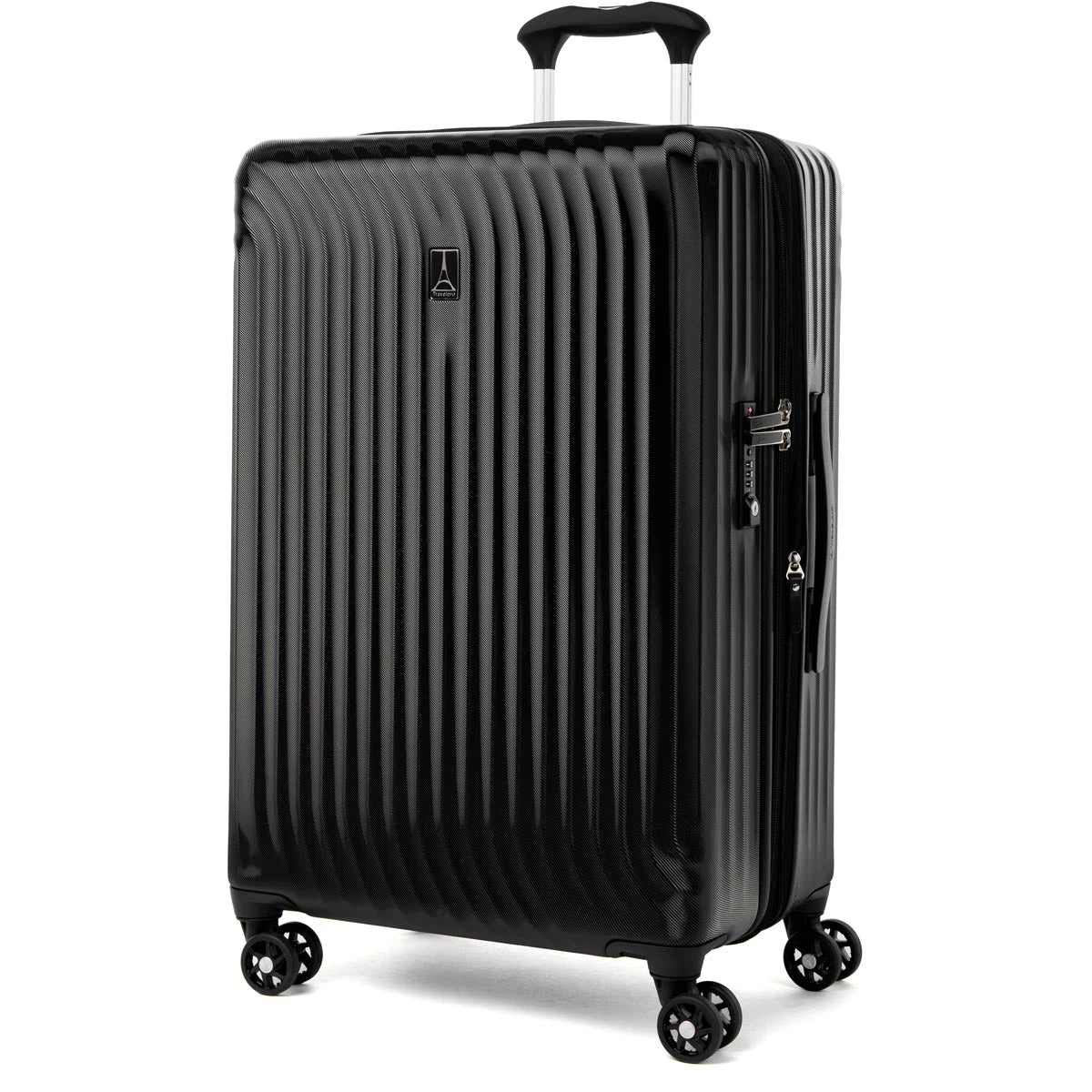 Load up and check in without extra weight. The lightweight, super durable Travelpro Maxlite Air 25″ Expandable Hardside Spinner gives you all the benefits of hard sided luggage in a resilient, well equipped suitcase, perfectly sized for medium and longer trips. The 100% polycarbonate exterior is engineered to flex on impact to prevent splitting, cracking or punctures, while a stylish exterior finish reduces visible scratches or scuffs.