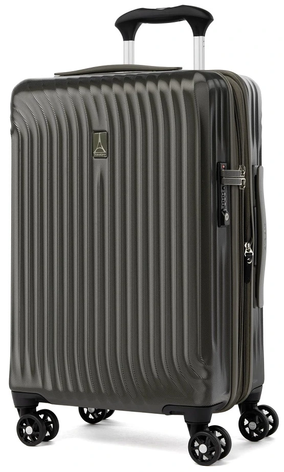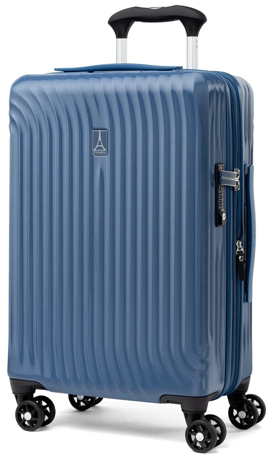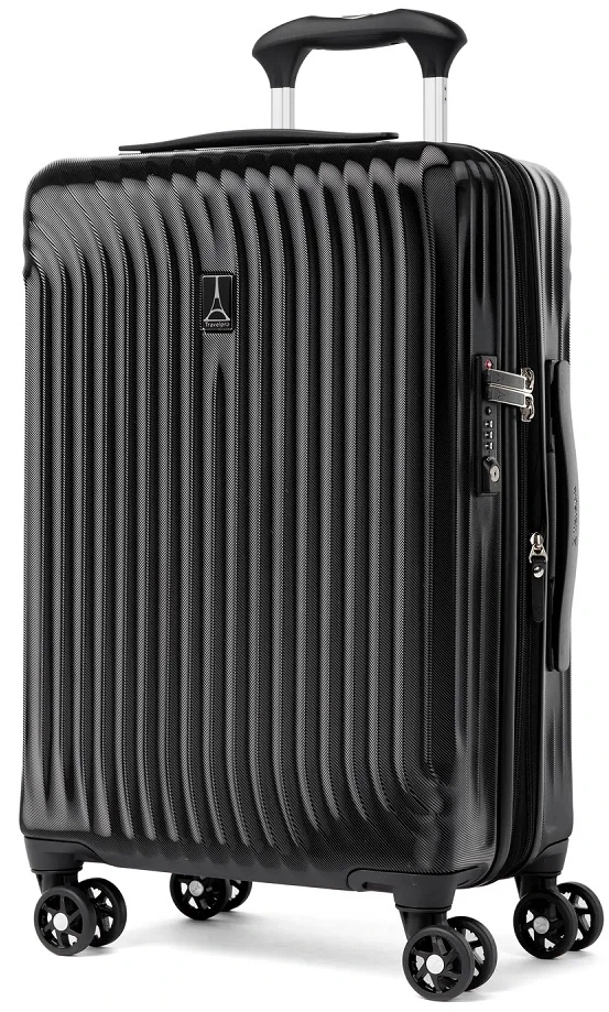 With a 100% polycarbonate shell, the Travelpro Maxlite Air carry on expandable hardside spinner luggage is perfect for quick trips. Light in weight and well-designed, the Travelpro Maxlite Air carry on hardside spinner luggage is easy to lift! With dual spinner wheels, you can roll it effortlessly along in any direction. It will glide beside you waiting in slow moving lines or rushing to your destination. The Travelpro Maxlite Air carry on hardside spinner luggage is fully lined with H2O guard that is made of 100% post-consumer recycled plastic bottles. It has two separate divided pockets for easy packing and unpacking. We include FREE shipping and a FREE leather luggage tag monogrammed with your own initials for quick and easy identification of your Travelpro Maxlite Air carry on expandable hardside spinner everywhere you go!