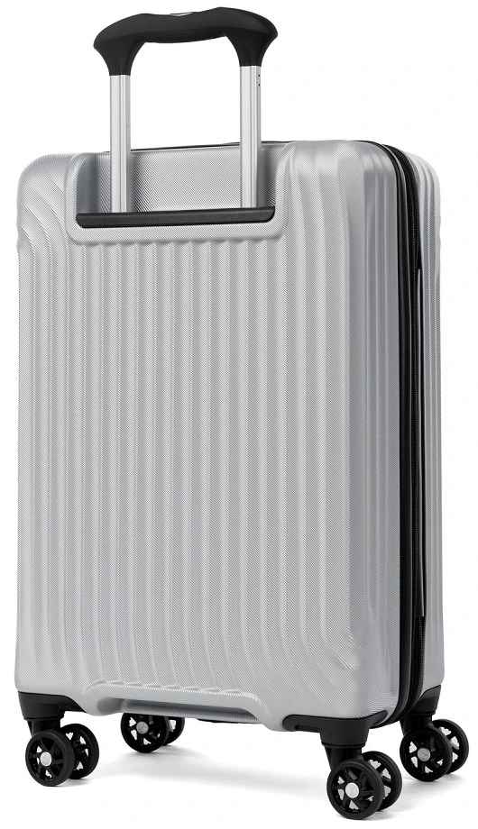 - Upright luggage handle has a contour grip design with TPR touch points specifically engineered for spinner model use